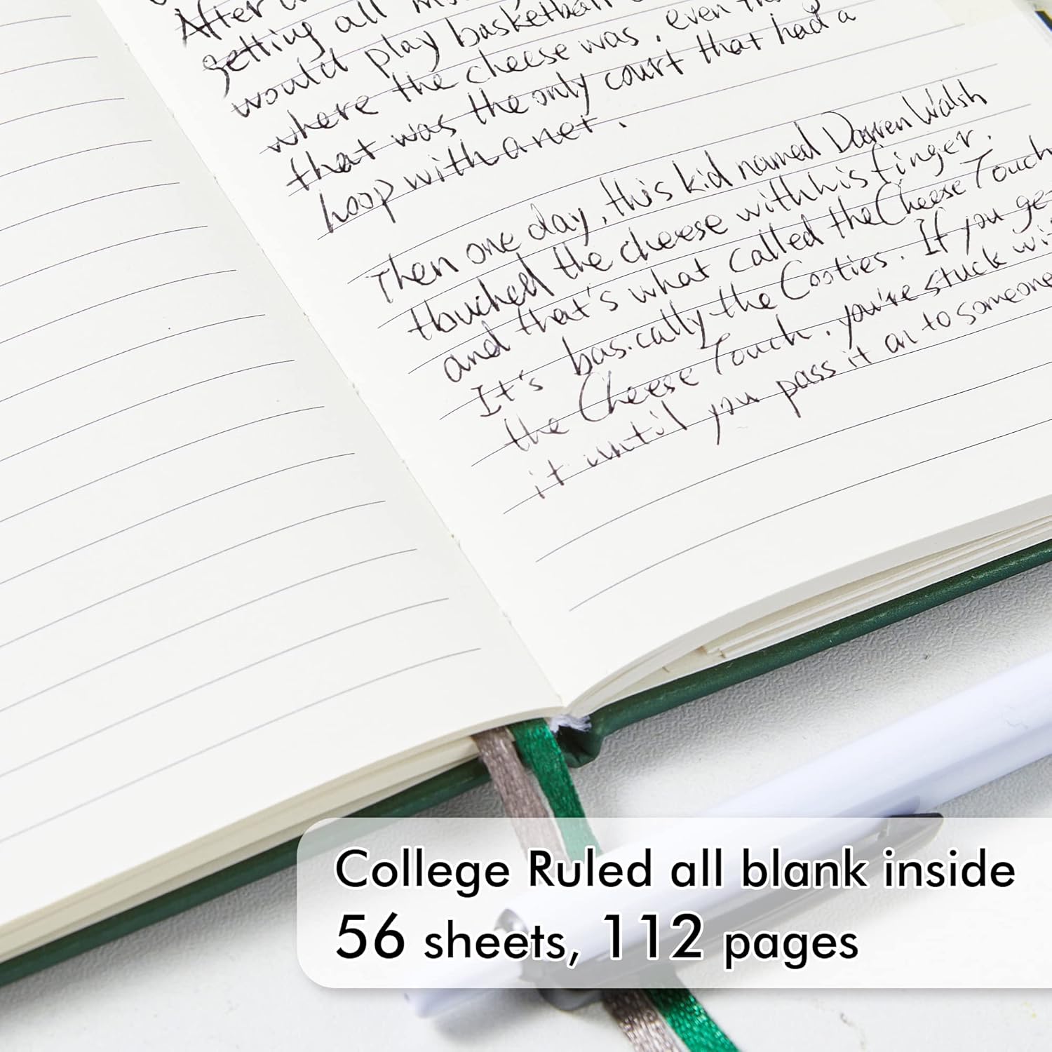 - These college ruled notebooks are all blank inside with 112 lined pages (56 sheets), which would be convenient for daily usage. The hard cover journal has a water-resistant faux leather cover, round corners and bookmarks, which is designed to lay and open flat. There’s a “date/page” column on the top of every page. You can use it as a reminder to let you remember those important dates and find the page you want in a very short time.