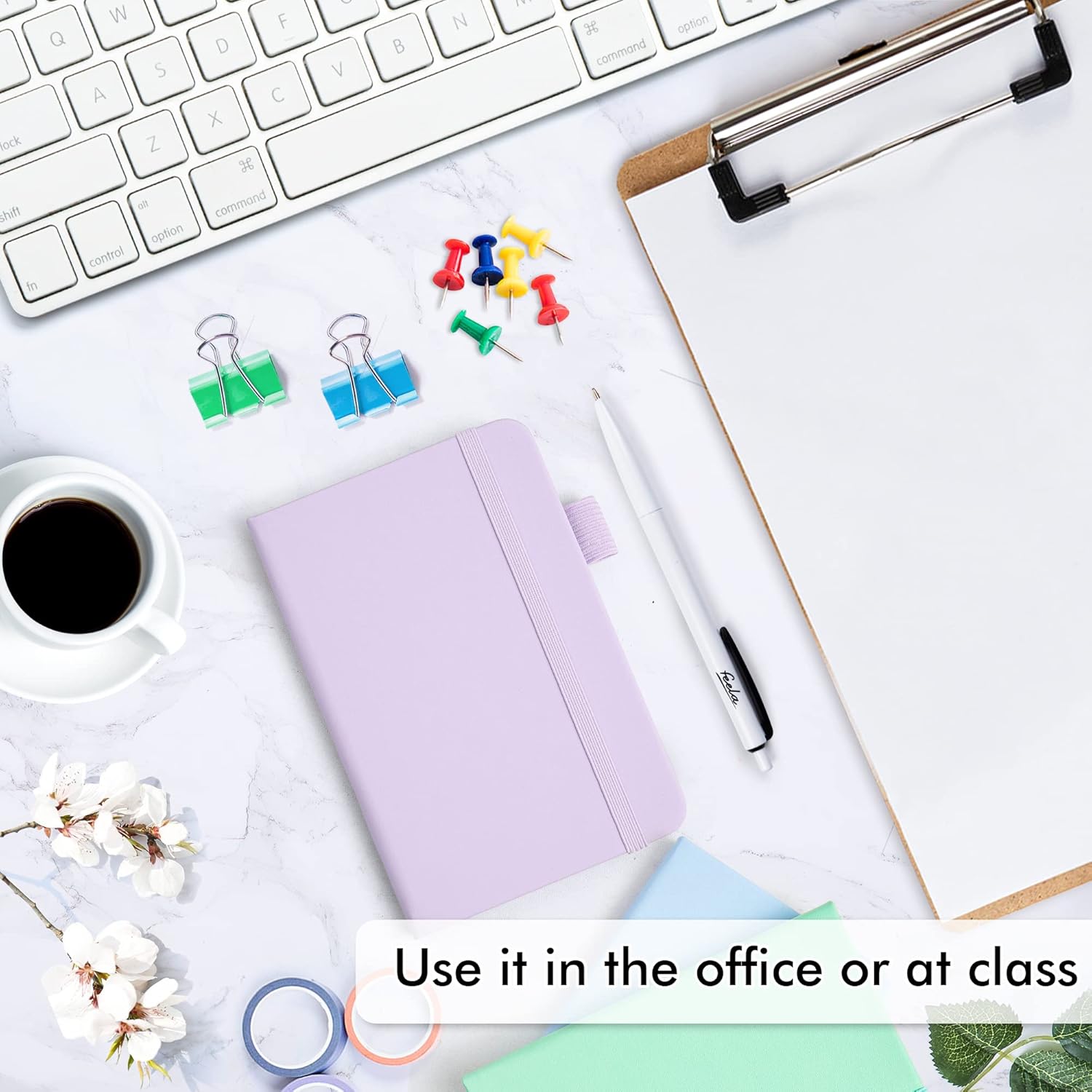 feela 3 Pack Pocket Small Notebook Journals, Mini Cute Hardcover College Ruled Notepad Women Office Supplies, with 3 Black Pens, 3.5”x 5.5”, A6, Pastel Colors, Light Blue, Light Purple, Light Green