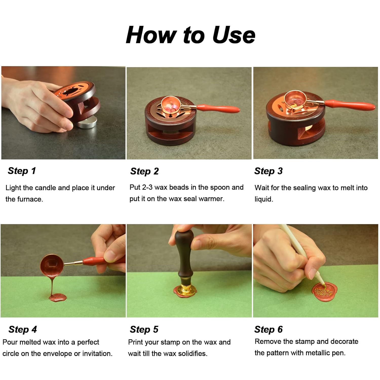 - Easy to Use and Clean:You usually need 2-3 wax beads for a complete seal with a 2.5cm diameter stamp, 4-5 beads is needed for a larger stamp. If you want a thicker seal please do not press the stamp hard. The spoon can simply be wiped clean with a napkin while it is still hot.