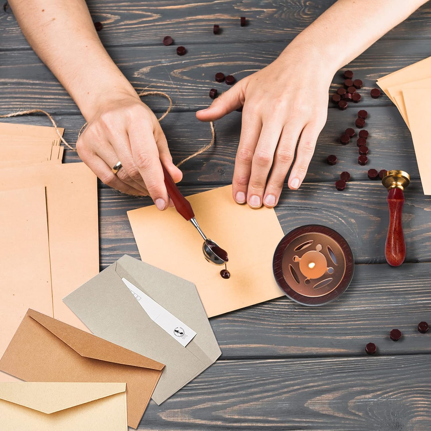 - Multi Application: Suitable sealing wedding invitations, envelopes, cards, manuscripts. Besides, you can use this sealing wax in manuscripts, parcels, crafts, wine sealing, tea or cosmetics packaging or other craft projects as a creative decoration. You will have lots of fun in making craft with this wax seal kit.