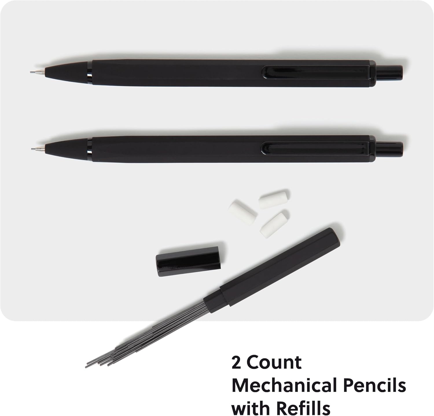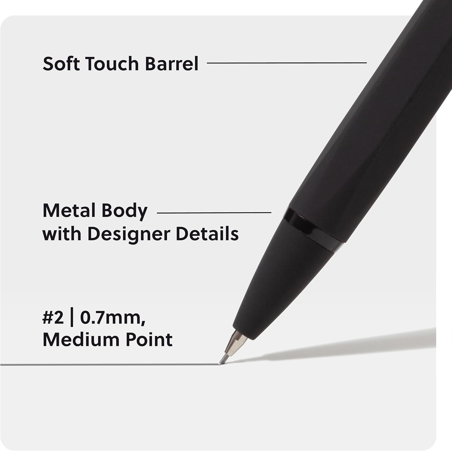 U Brands Cambria Mechanical Pencils, Set of 2, Midnight Black, Soft Touch, Medium (0.7 mm) Point, Lead and Eraser Refills