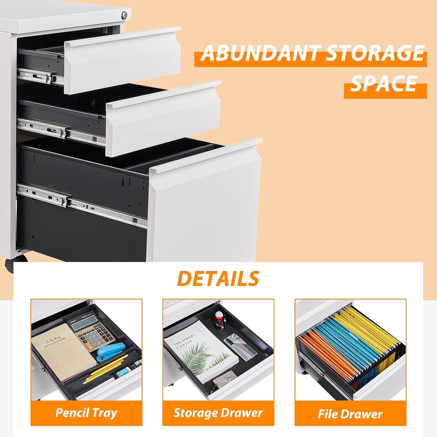 - 【Premium Material】This 3 drawer filing cabinet is made of cold rolled steel, durable and has a load capacity of up to 330 lbs.
