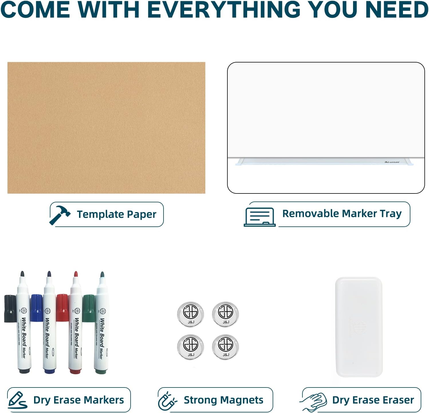 - 【ACCESSORIES INCLUDED】: 4 dry erase markers, 4 magnets, 1 glass whiteboard eraser, 1 removable aluminum marker tray. One-stop shopping. t's a great gift idea for your workmate, boss or spouse which can enhance the office/ house atmosphere