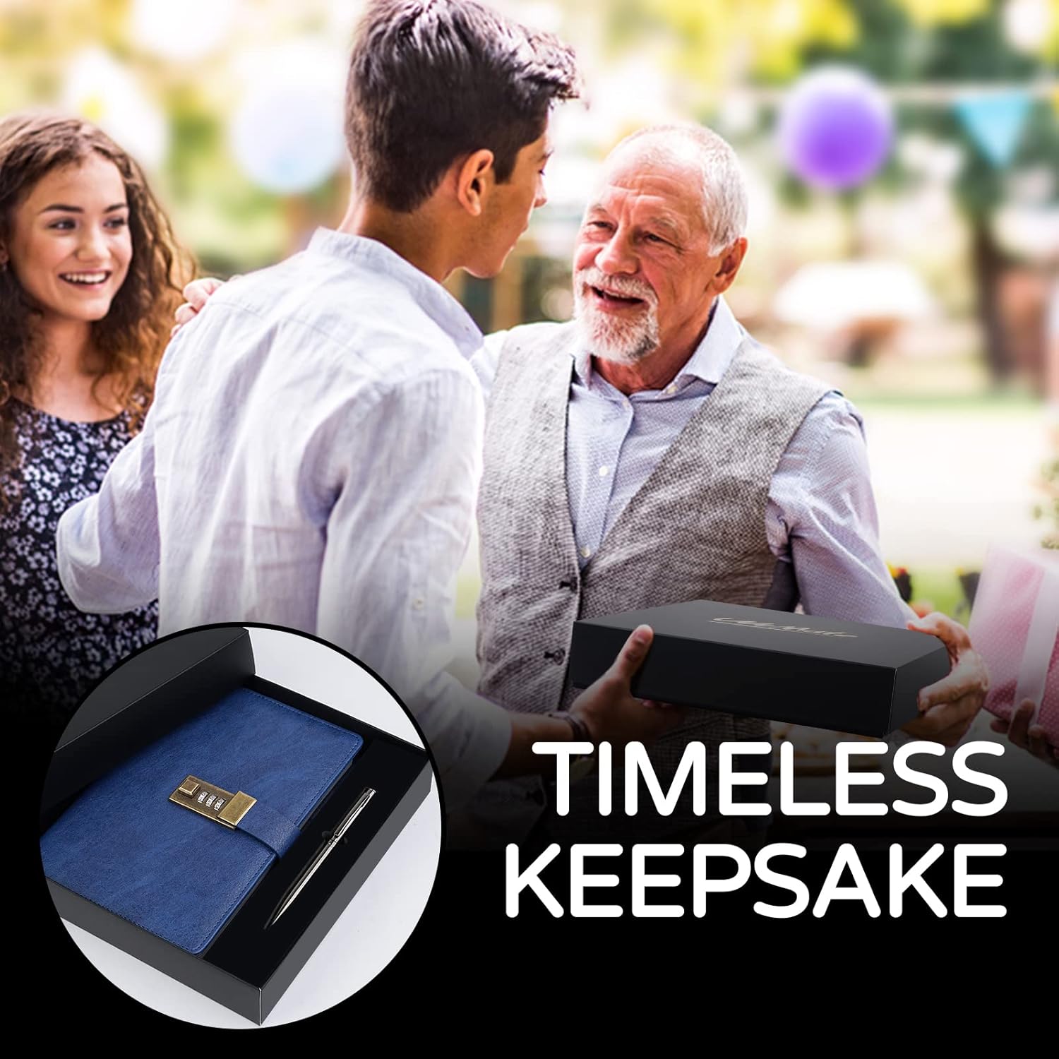 WEMATE Diary with Lock, A5 PU Leather Journal with Lock 240 Pages, Vintage Locks Journal Password Notebook with Pen, Locks Diary Planner Organizer for Men and Women, 8.6x5.8in Blue