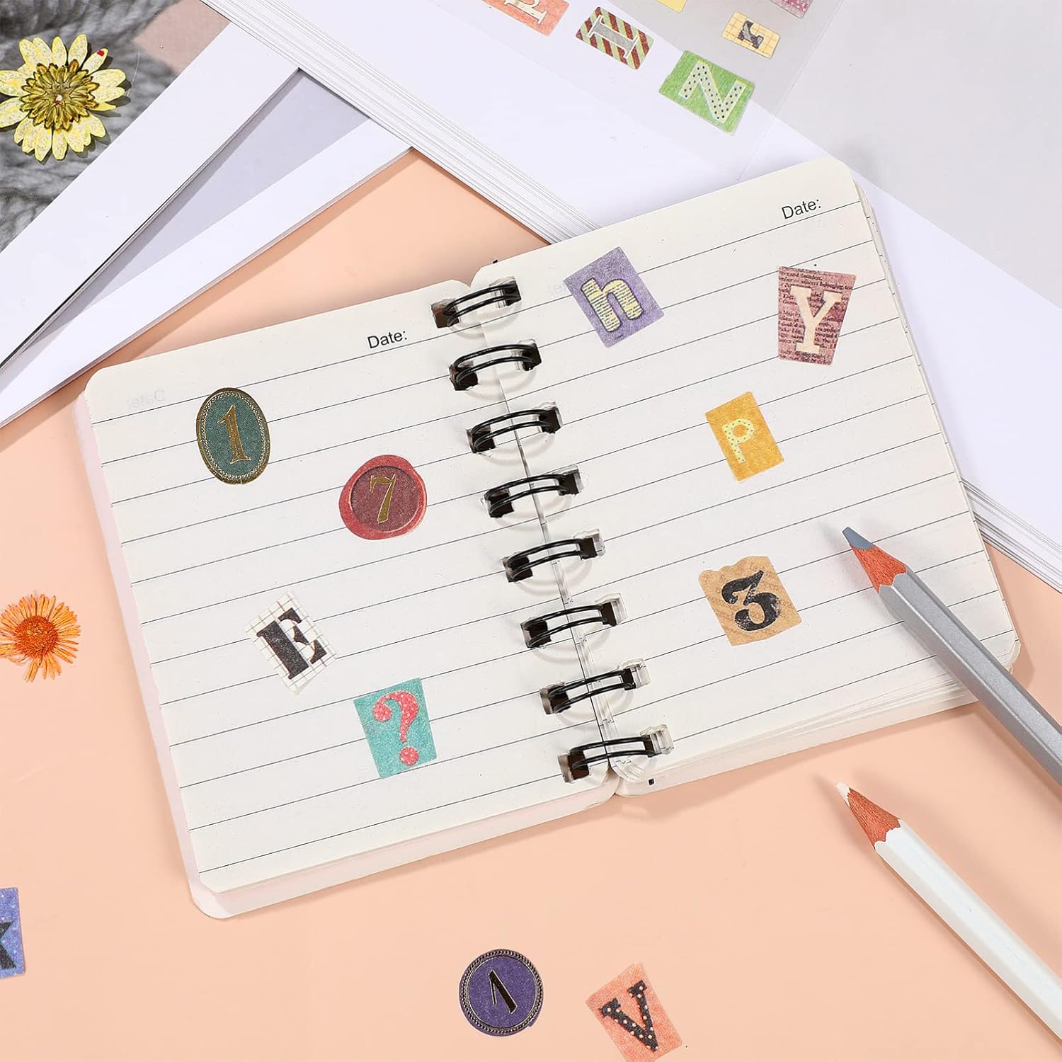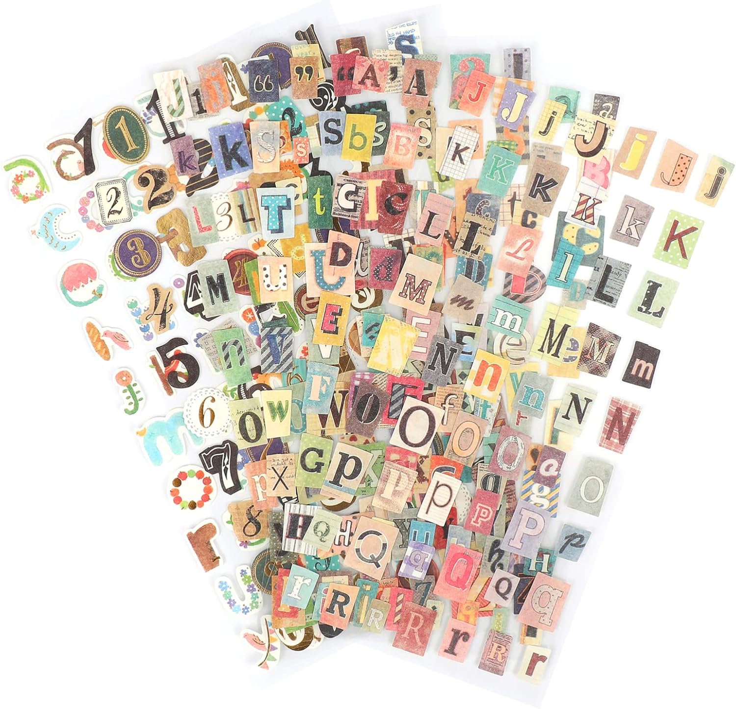 6 Sheet Vintage Scrapbook Stickers, Scrapbook Stickers Graffiti,Vintage Letters Numbers Self Adhesive Decals Scrapbooking Supplies for Diary DIY Art Album Crafts