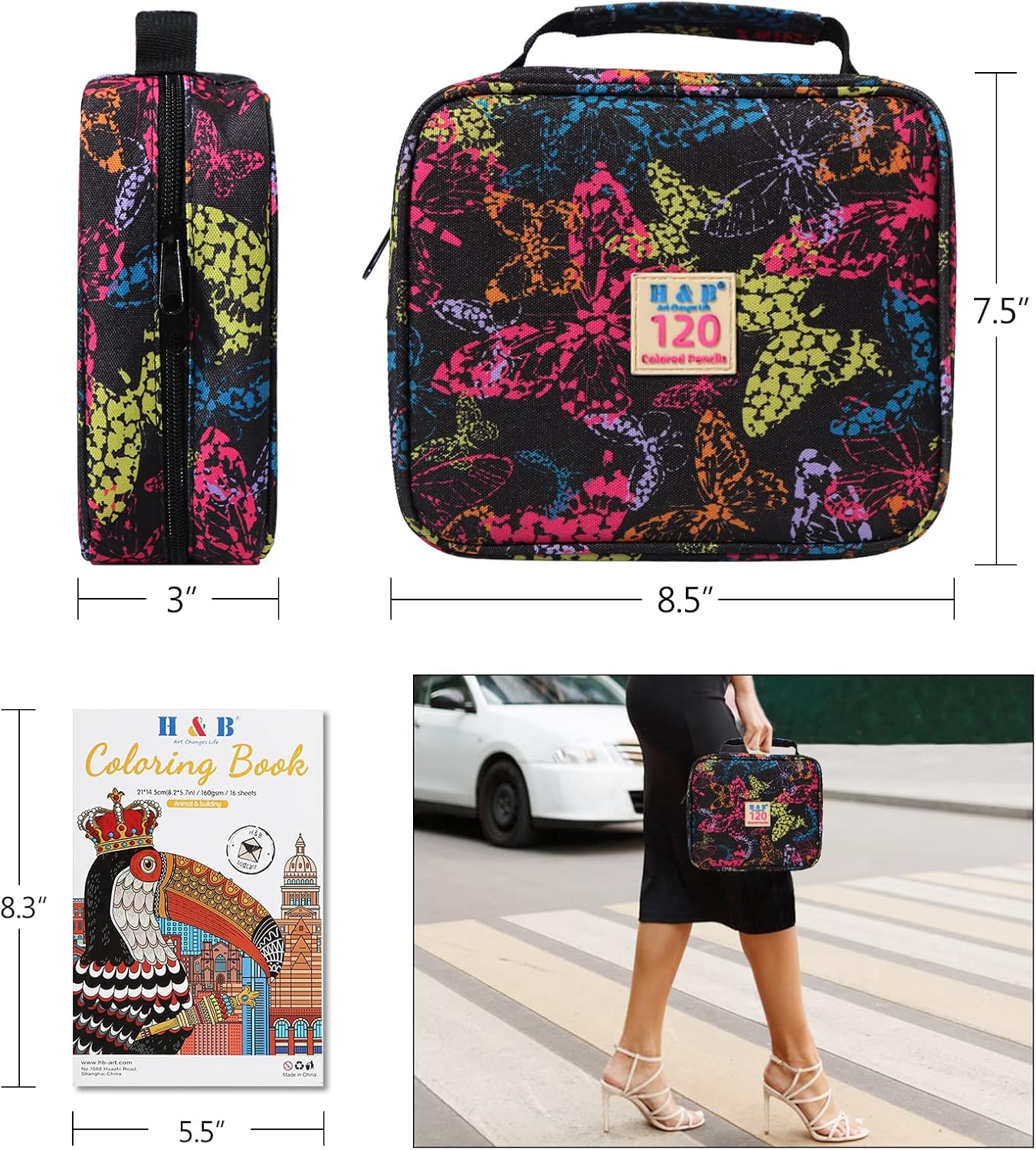 H & B 120-Color Colored Pencils Set with Coloring Book, Eraser, and Sharpener - Perfect for Drawing and Coloring - Soft Oil-Based Cores Ideal for Adults, Kids, and Beginners