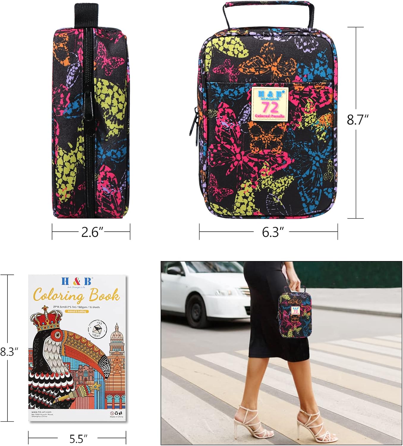 H & B 72-Color Colored Pencils Set with Coloring Book, Eraser, and Sharpener - Perfect for Drawing and Coloring - Soft Oil-Based Cores Ideal for Adults and Beginners