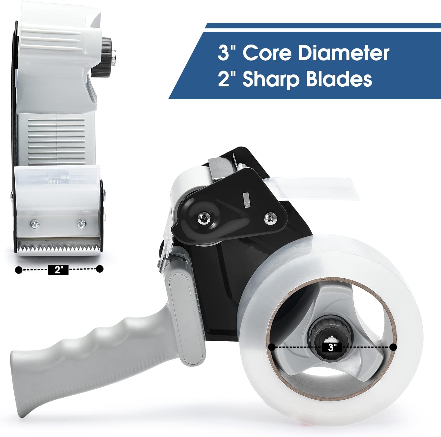Packing Tape Dispenser Gun, Pacific Mailer 2 Inch Tape Gun Dispenser with 2 Inch Carton Packing Tape, Lightweight Industrial Side Loading Tape Dispenser - Black