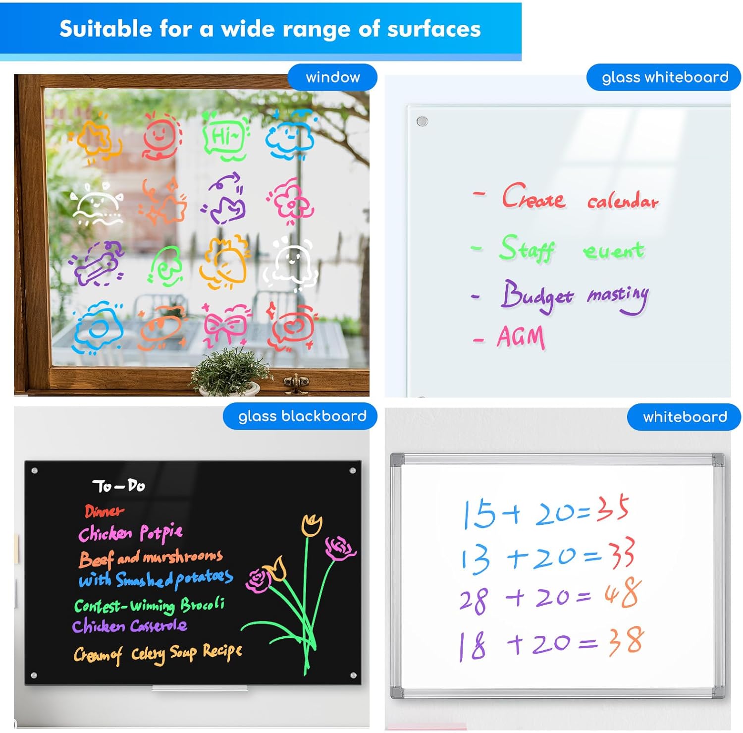 - Low Odor & Non-toxic Ink: Safe to use, no odor, so you can enjoy long-lasting and worry-free use without harmful chemicals; Glass board markers are suitable for classrooms, offices, and home offices