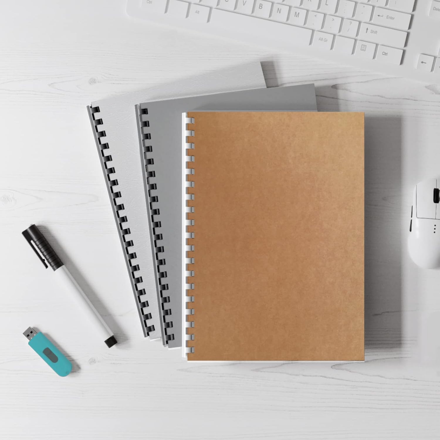 - 12 Mil Paper Cover: Each binding cover is made of 230 GSM nature kraft paper that feels thick and sturdy, designed to give each heavyweight kraft cardstock a sleeker and more elegant feel. Natural colors and environmentally friendly. This 12mil paper binding cover is made to last without tearing or bending.