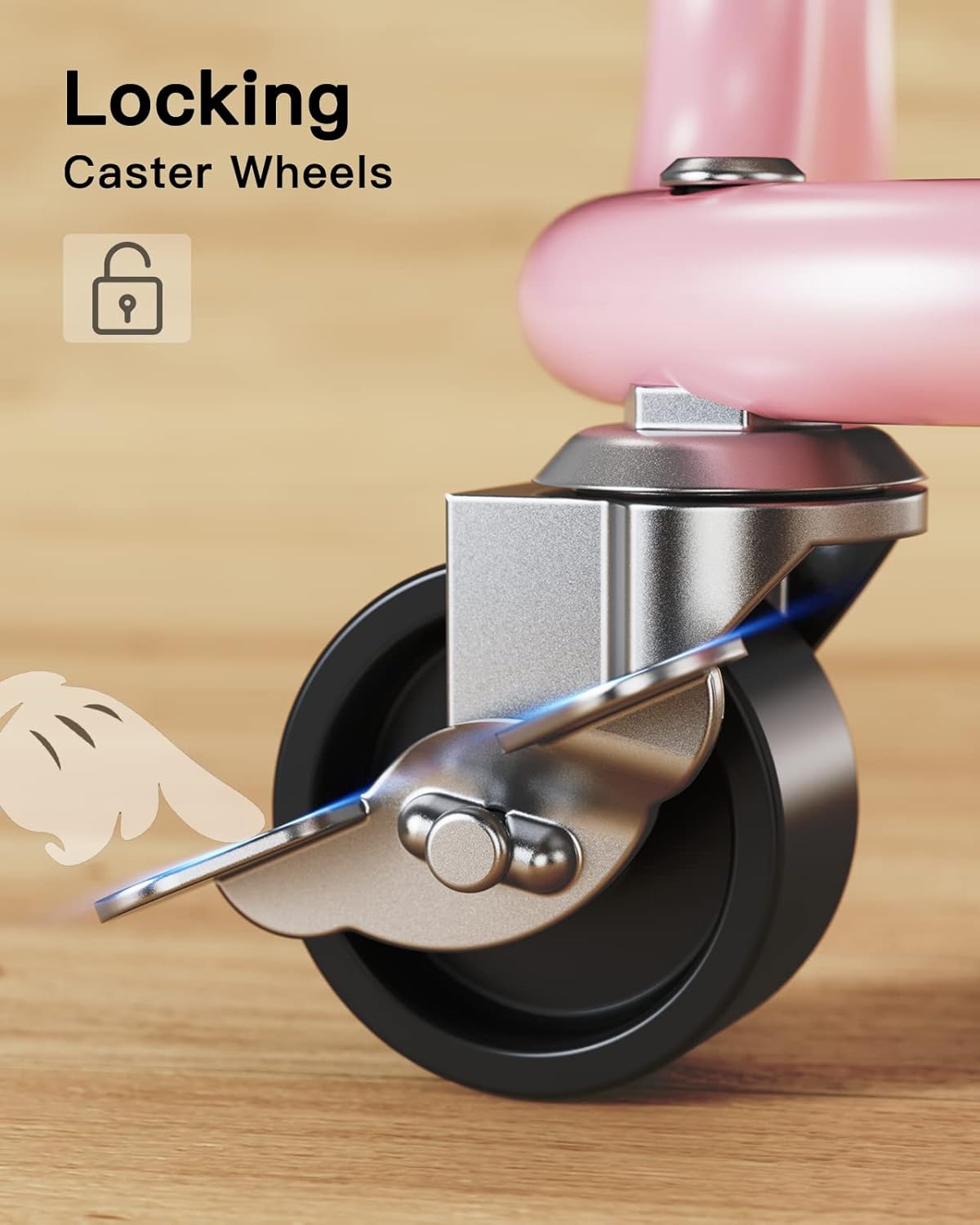 Pipishell 3-Tier Metal Rolling Utility Cart, Heavy-Duty Storage Cart with 2 Lockable Wheels, Multifunctional Mesh Organization Cart for Kitchen Dining Room Living Room (Pink)