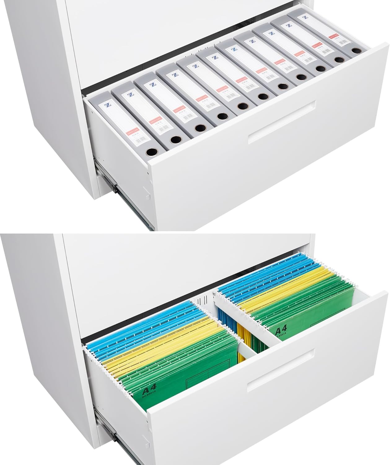 - 【Lockable Storage Cabinets】 Our file cabinet with lock & 1 adjustable shelf for a great fit & convenience. 1 large metal drawers for letter, A4, legal size hanging folders, high end unlocks to protect valuables including keys. Whatever your storage needs, you can create a unique storage space that suits them