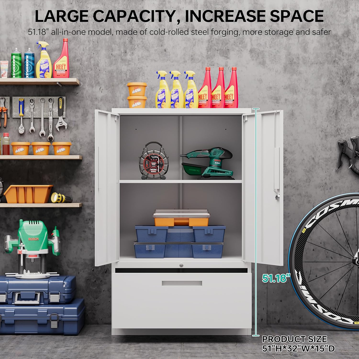 - 【Large Capacity】 : Storage cabinet with doors and shelves, 1 adjustable shelf to meet your different needs for placing items, shelf & door lock can highly protect items from temperature, dirt & dust, & equipped with a drawer , for letter/legal/A4 size documents