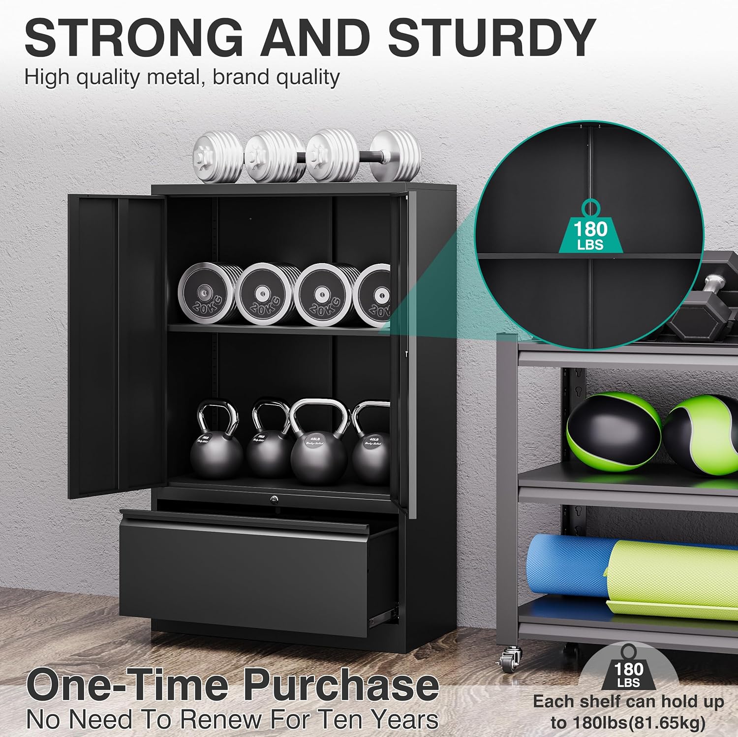 - 【Lockable Storage Cabinets】 Our file cabinet with lock & 1 adjustable shelf for a great fit & convenience. 1 large metal drawers for letter, A4, legal size hanging folders, high end unlocks to protect valuables including keys. Whatever your storage needs, you can create a unique storage space that suits them
