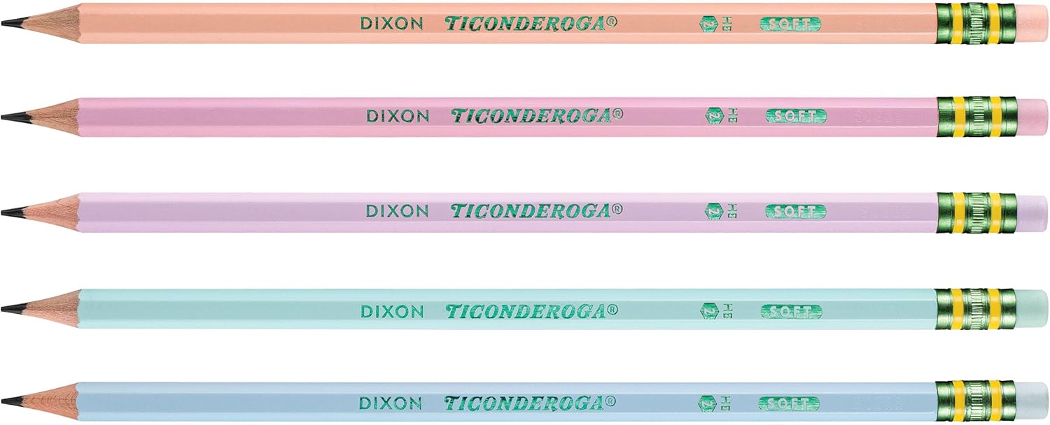 - Create beautiful artwork with Ticonderoga Pastel Pencils. Each pencil boasts a latex-free eraser for quick corrections.