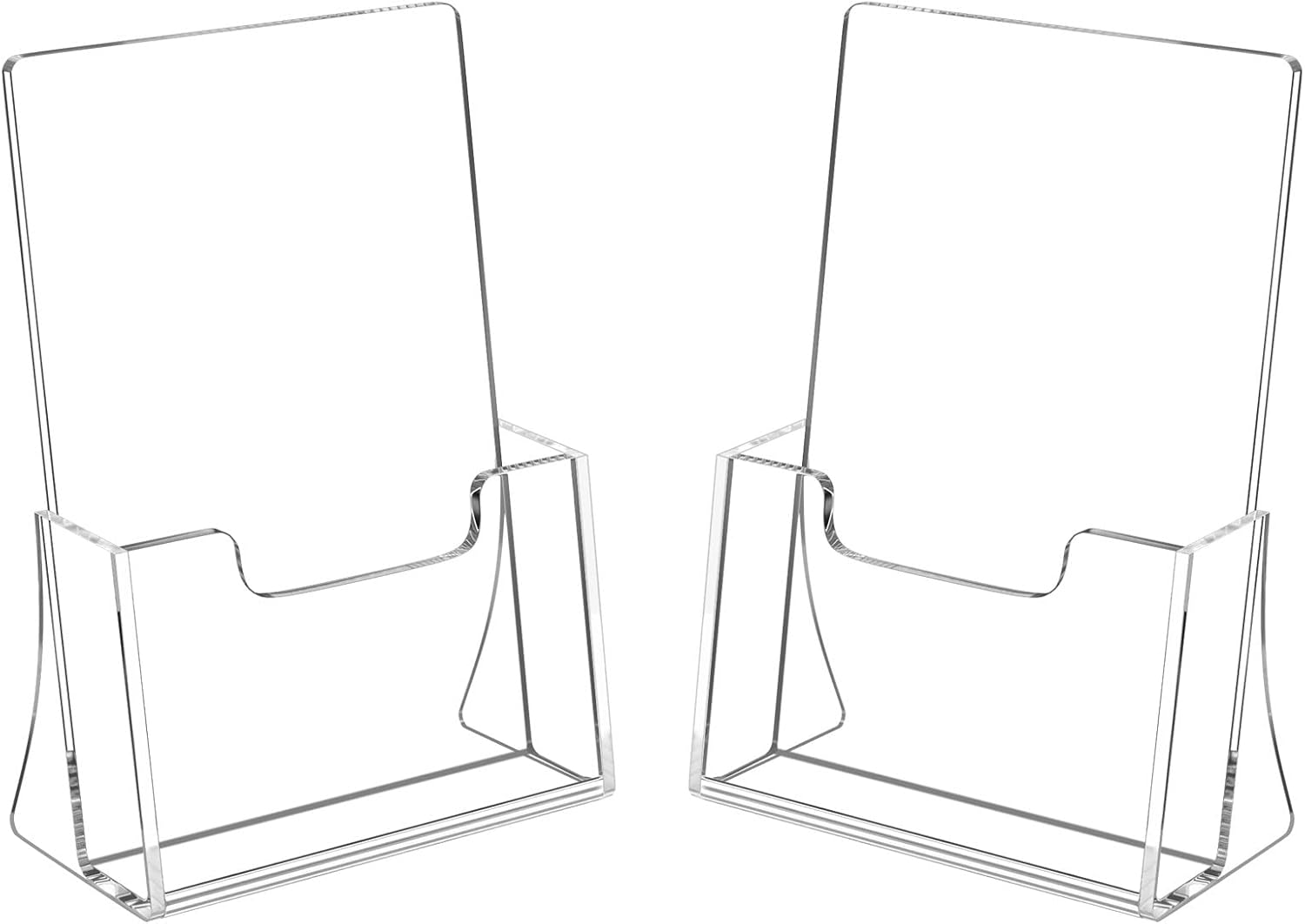 HIIMIEI Brochure Holder 8.5 x 5.5 inches, Acrylic Flyer Holder with 2 Pack, Plastic Stands for Displaying Magazines, Pamphlets, Literature, Brochures, Booklets, Menu