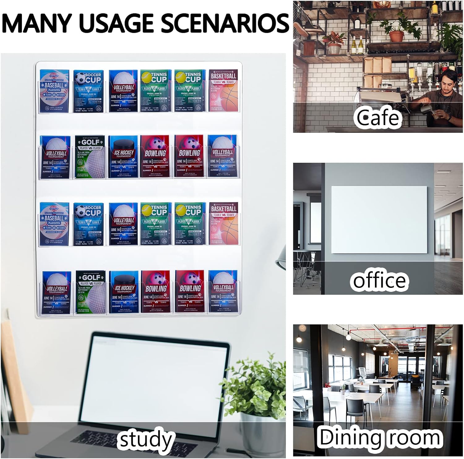 - Suitable Size: the overall dimension of our acrylic brochure wall mount holders is 29.5 x 25.5 inches, each pocket dimension is 4 x 1 inch, and each pocket capacity is approx 50 postcards, this is a useful business card or gift card wall display solution