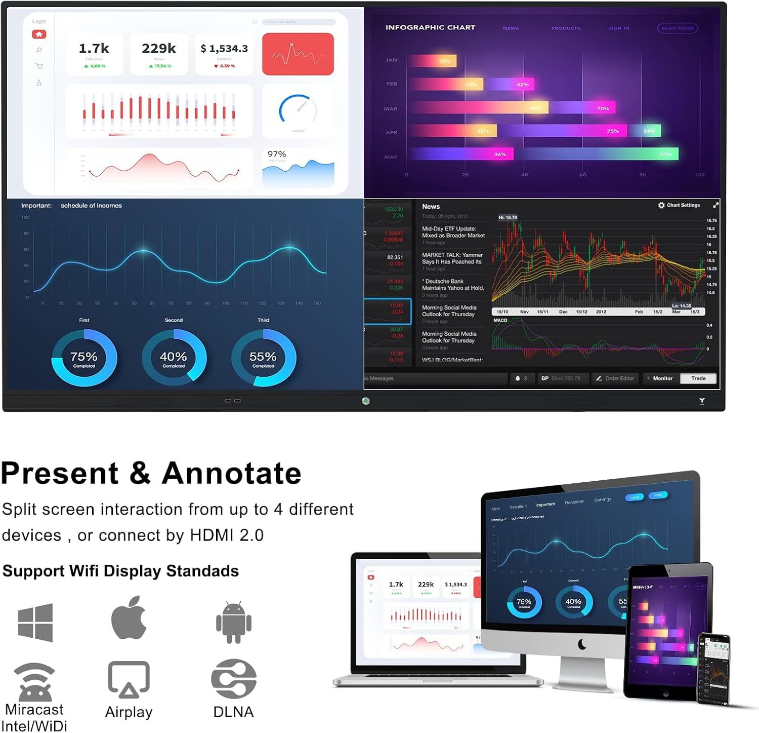 - Open Ecosystem for Enhanced Workflow Integration - The TIBURN HQ Board 75" R2 supports an open ecosystem, allowing seamless integration of your favorite applications and software. Whether for video conferencing, brainstorming, or presentations, this smart board adapts to your workflow needs.