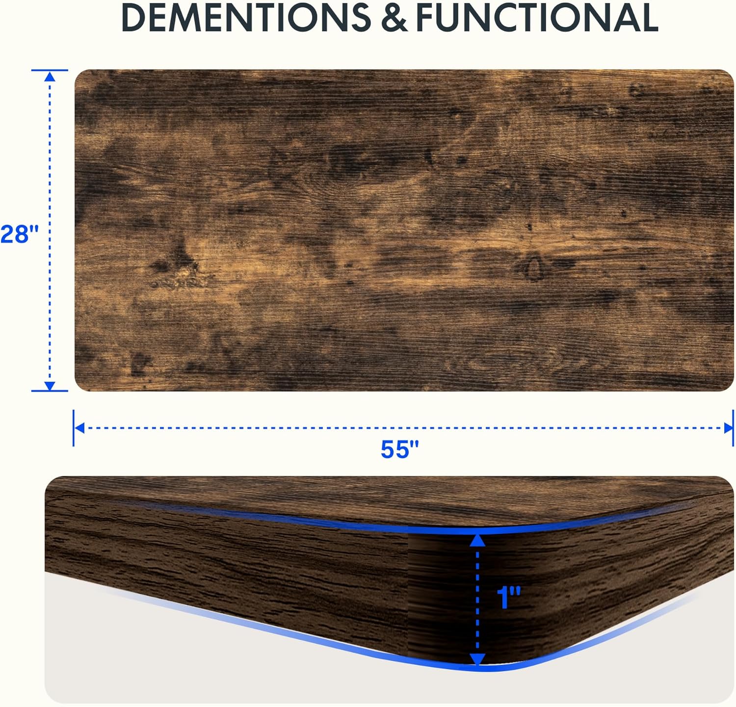 FLEXISPOT EN2 Whole-Piece Standing Desk with Clamp Power Strip, 55 x 28 Electric Stand Up Height Adjustable Desk with Cable Management (Black Frame + 55" Rustic Brown Desktop, 2 Packages)