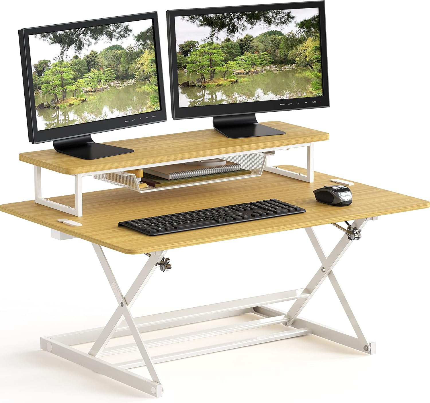 - STURDY STRUCTURE - Ergonomic design standing desk. The solid structure keeps your desk riser steady and the maximum weight hold up to 30 lbs.