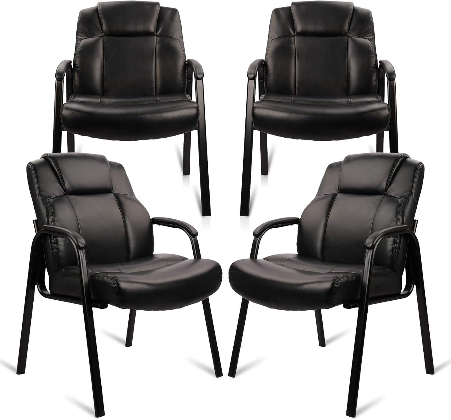 CLATINA Big & Tall 500 lb. Guest Chair, Leather Reception Chairs with Padded Arm Rest for Waiting Room Office Home and Meeting Conference-Black, 4 Pack