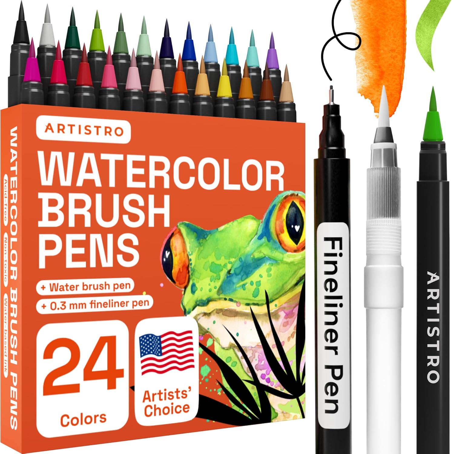 - NON-TOXIC & ACID-FREE: Each watercolor pen meets all USA and EU safety requirements and comes with xylene-free opaque ink. Plus, the Artistro paint brush pens are environmentally-friendly and safe for kids too.