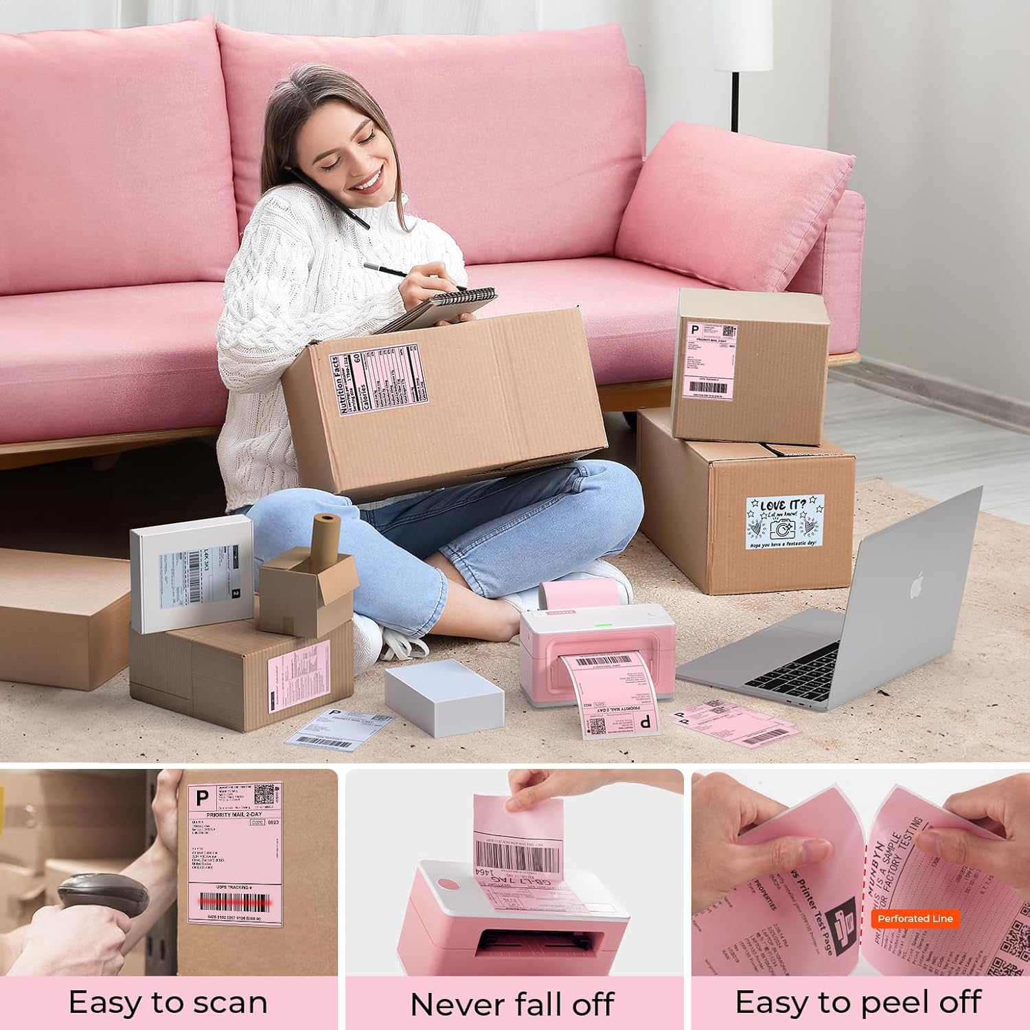 - Cristal Clear Print & Smoothly Run: Munbyn's high-resolution labels are made of top-quality paper material, ensuring that they are resistant to fading and provide crystal clear printing. The light pink tone creates a sharp contrast with dark labeling, making barcodes, addresses, and other vital details easy to read and reliable to scan. Additionally, the perforated and easy-peel backing design reduces the risk of paper jams and technical difficulties, allowing for smooth and fast printing
