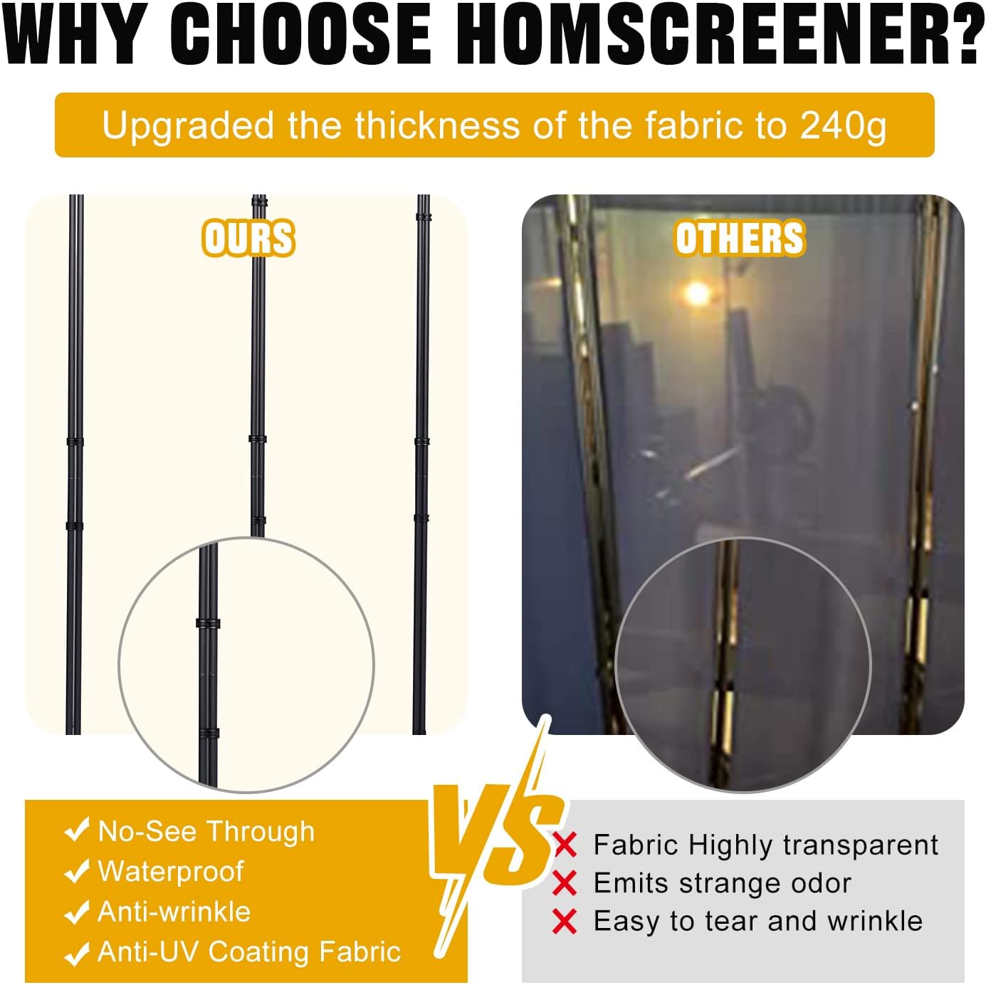 - Why HOMSCREENER: We are committed to providing premium room divider and satisfied after-service. Package included all the necessary accessories and installation manual. If any parts missing or damaged during transportation, do not hesitate to contact us for replacement