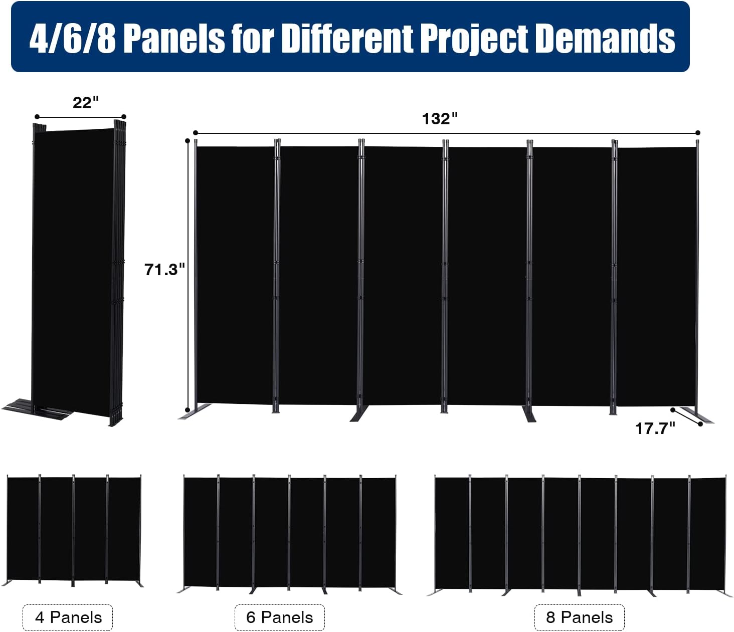 - Stable Structure: Our Room Partitions and Dividers is made of strong steel frame with powder coating, which is not easy to scratch and rust, extending the service life. Extra Longer and Wider Feet pads fits more easily to the ground and improve the stability of the room divider and not easy to shake and fall
