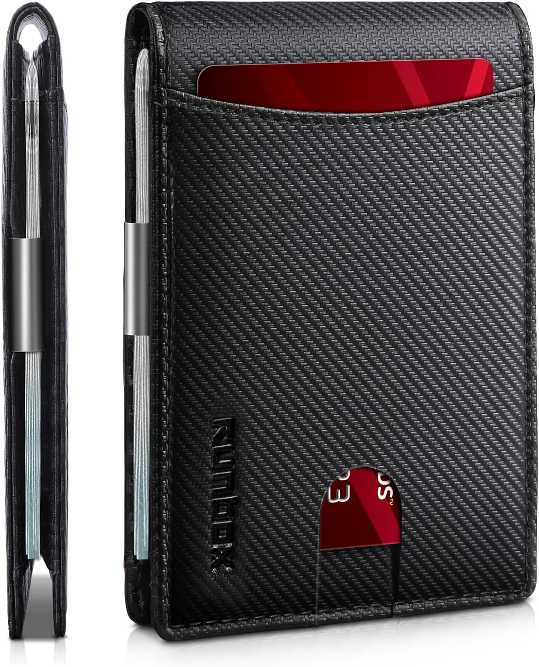 RUNBOX Money Clip Slim Wallets for Men RFID Blocking 11 Card Holder Minimalist Small Leather Bifold Men's Front Pocket Wallet Gift Box