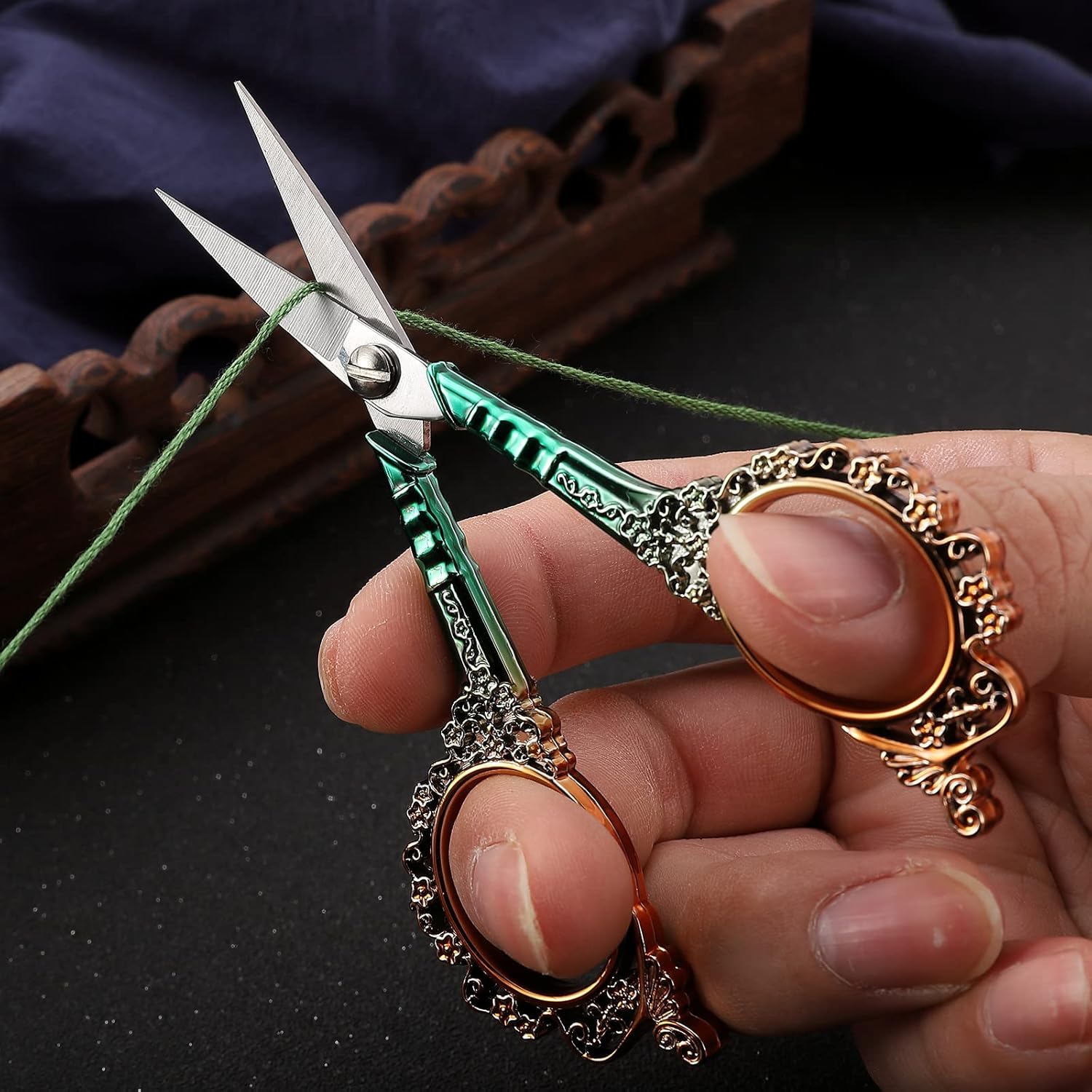 - Vintage Style Decorative Thread Snips Designed with Beautiful Gold Green Ergonomic Handles, can be Used Right or Left Hand, Easy to Grip; the Beautiful Scissors having Pointed Edge and Sharp Blades, having a Sharp Pair of Small Shears is an Easy Embroidery Hack