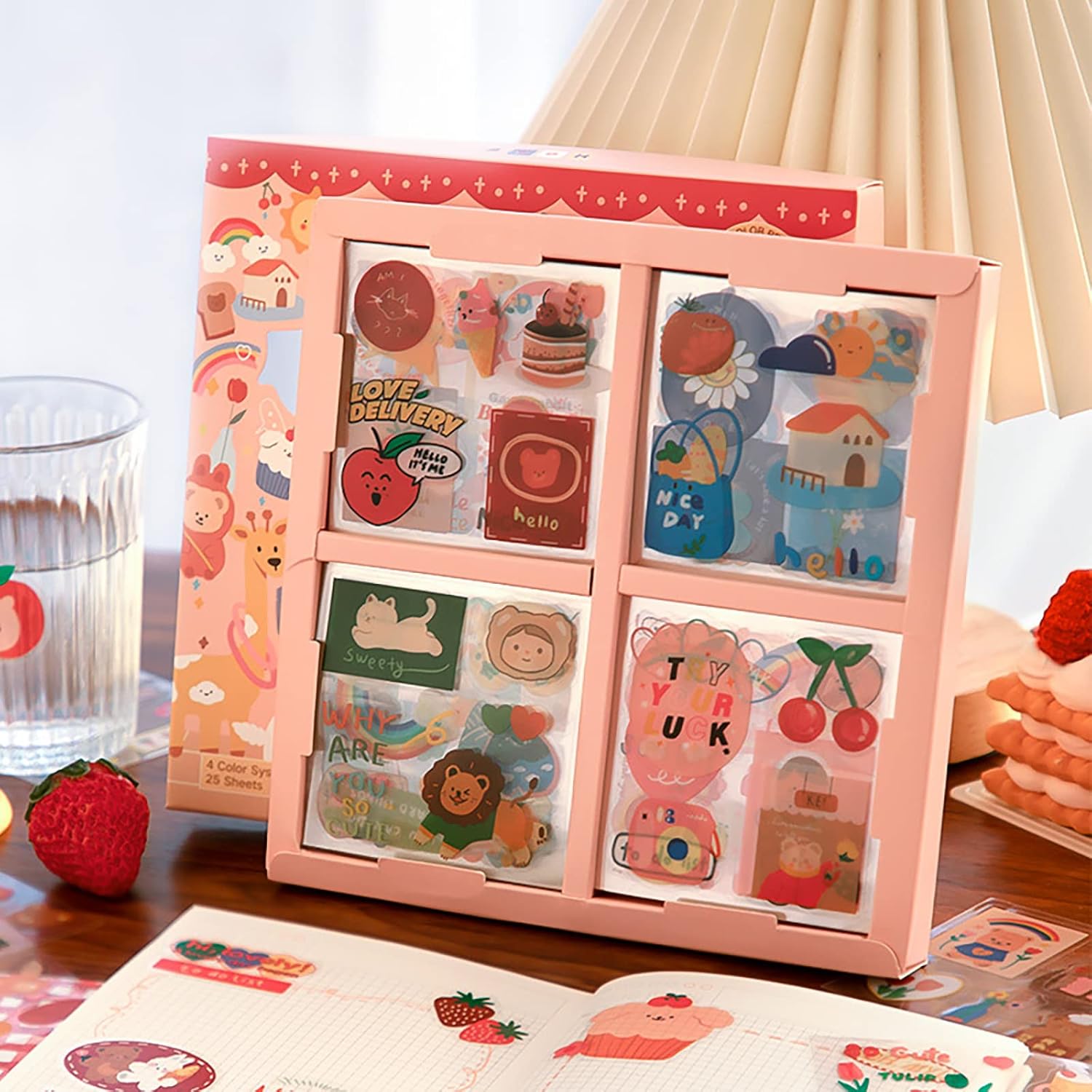 - Design: These cute stickers set includes cartoon animals, food, fruits, flower, plants, ribbons. Every sticker in this set is unique.
