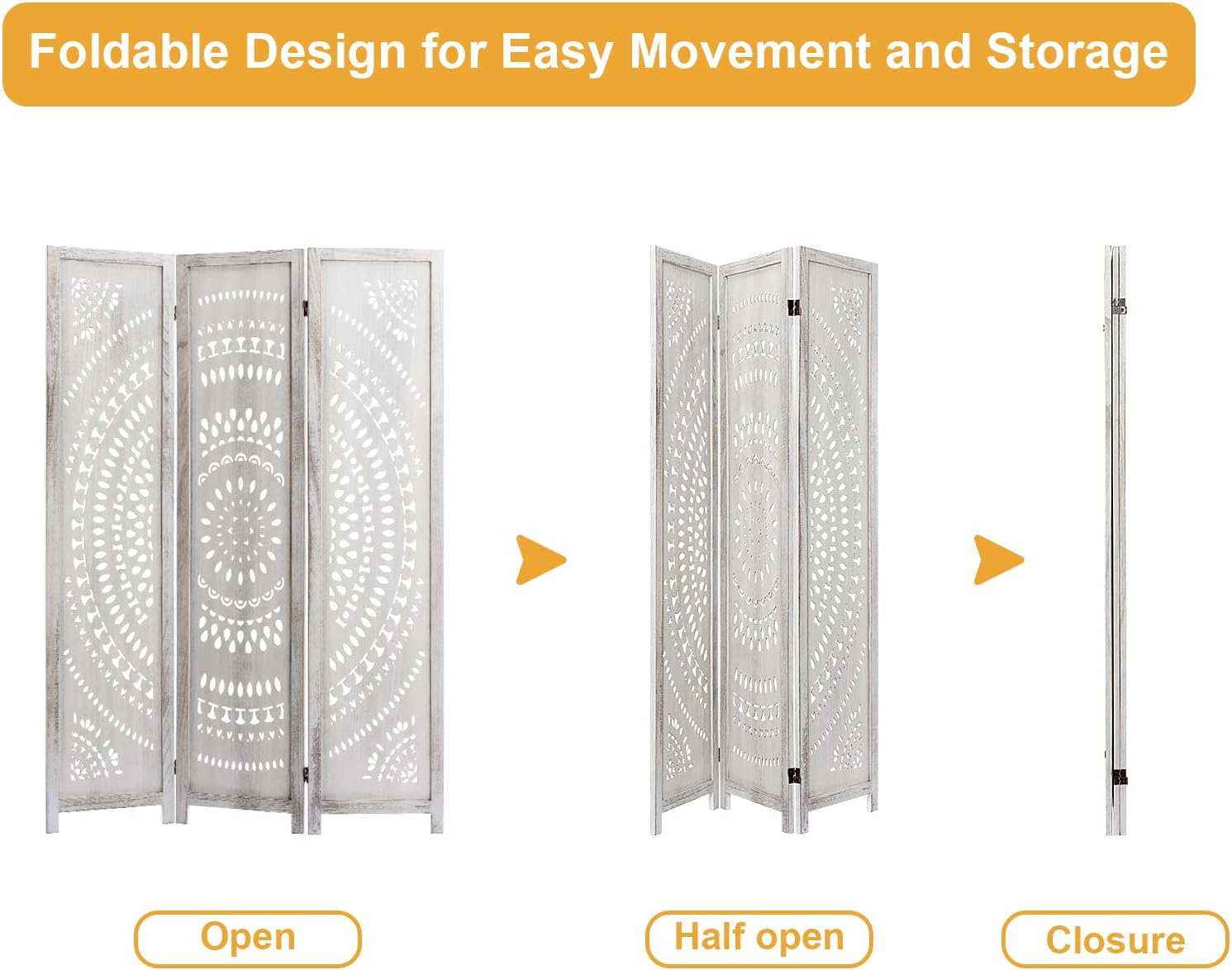 - 👍Premium Materials & Craftsmanship: The folding screen is made of a combination of density board and solid wood frame, which is strong, durable, environmentally friendly, breathable and lightweight. The rectangular wooden legs are designed to ensure more stability on the ground and prevent the room divider from shaking or tipping over