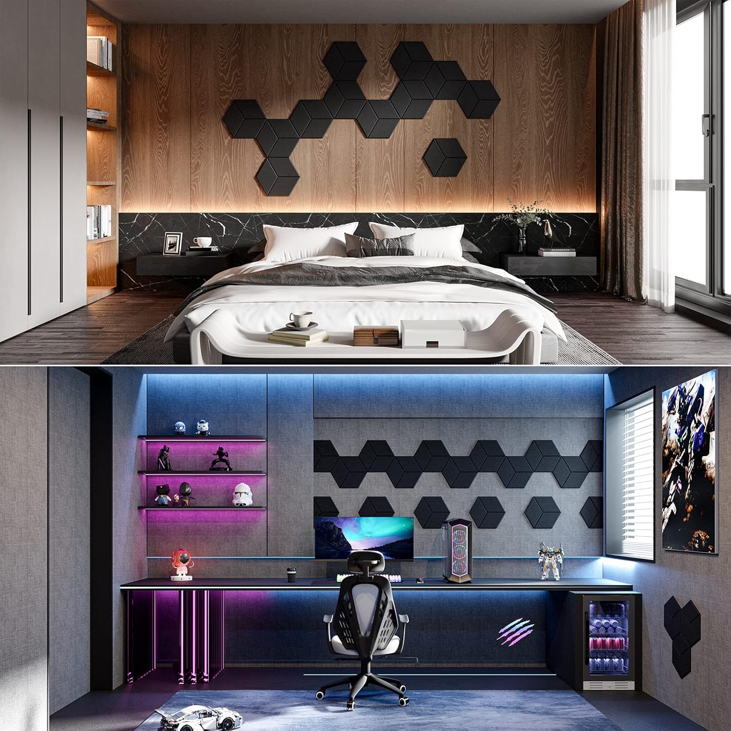 - Stylish and Versatile Design: Our unique Y-lined soundproof wall panels feature a beveled edge design that makes them an attractive addition to any room or apartment. They're lightweight, available in various colors, and can be hung like art or accents to match your decor.