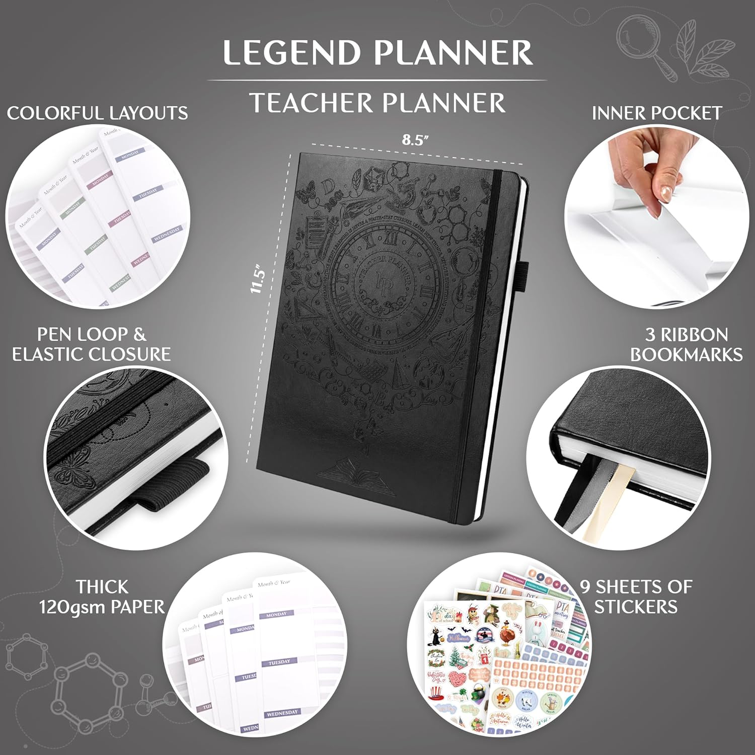 Legend Teacher Planner – Undated Lesson Plan Book for Teachers with Weekly & Monthly Calendars - Classroom Organization & School Year Planner – 8.5”x11.5” Hardcover (Black Debossed)