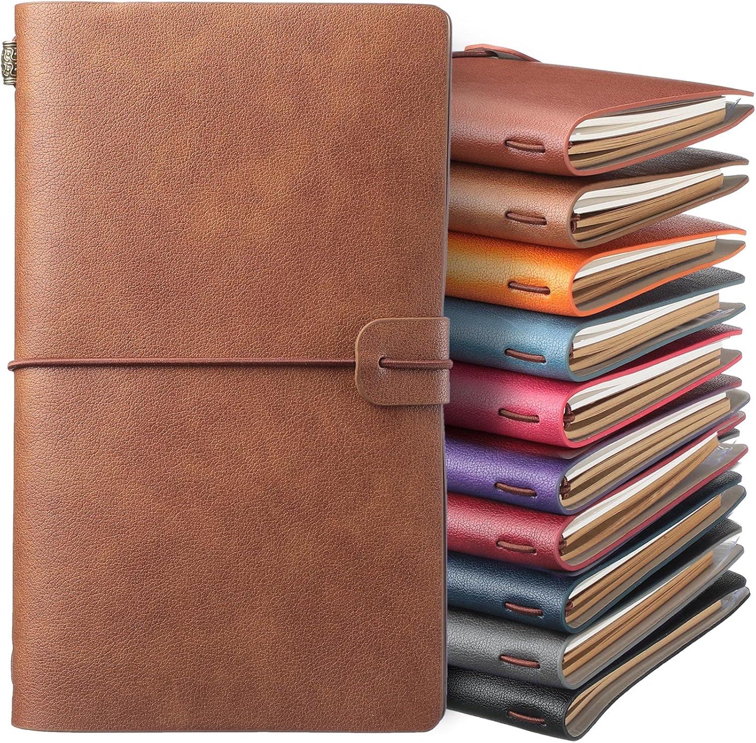 Sinmoe 10 Pack PU Leather Notebook Journal Bulk, Vintage Travel Notebook Multicolor Refillable Journal Diary Planner Gifts for Men Women, 100GSM Lined Paper, Card and Phone Slot, 7.9 x 4.7 Inches