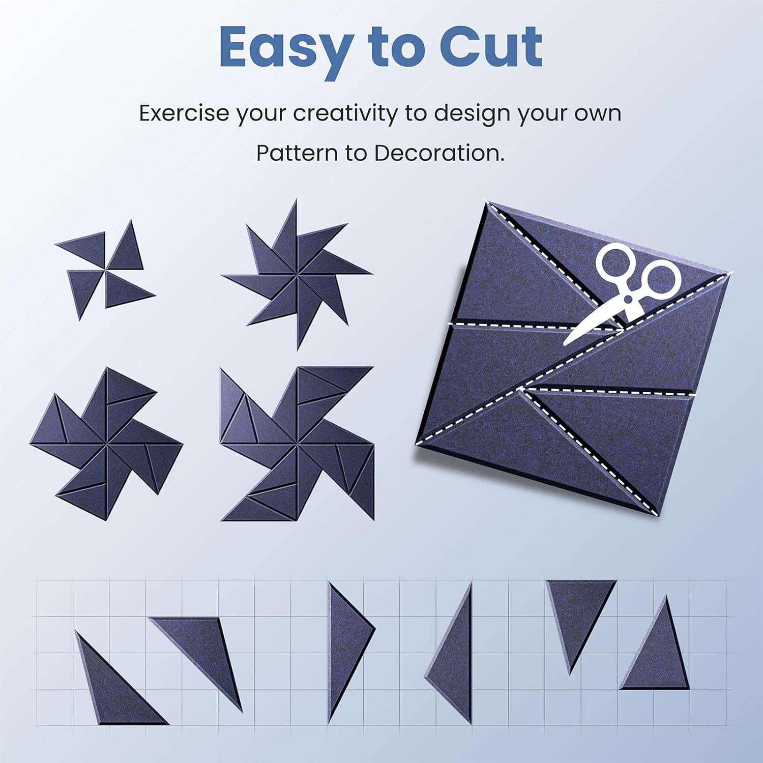 - 👍【Perfect for wall decoration】Be different from other acoustic panels,We have not only upgraded their acoustic performance,but aslo their appearance.Adopt beveled edge and multi-line design.They can be DIY into pinwheel patterns and multi-ring patterns.They absorb unnecessary sound while playing a good role in decorating the wall.Perfect for professional studios, video blogger,game room, podcasting, school,home theaters,offices,etc.