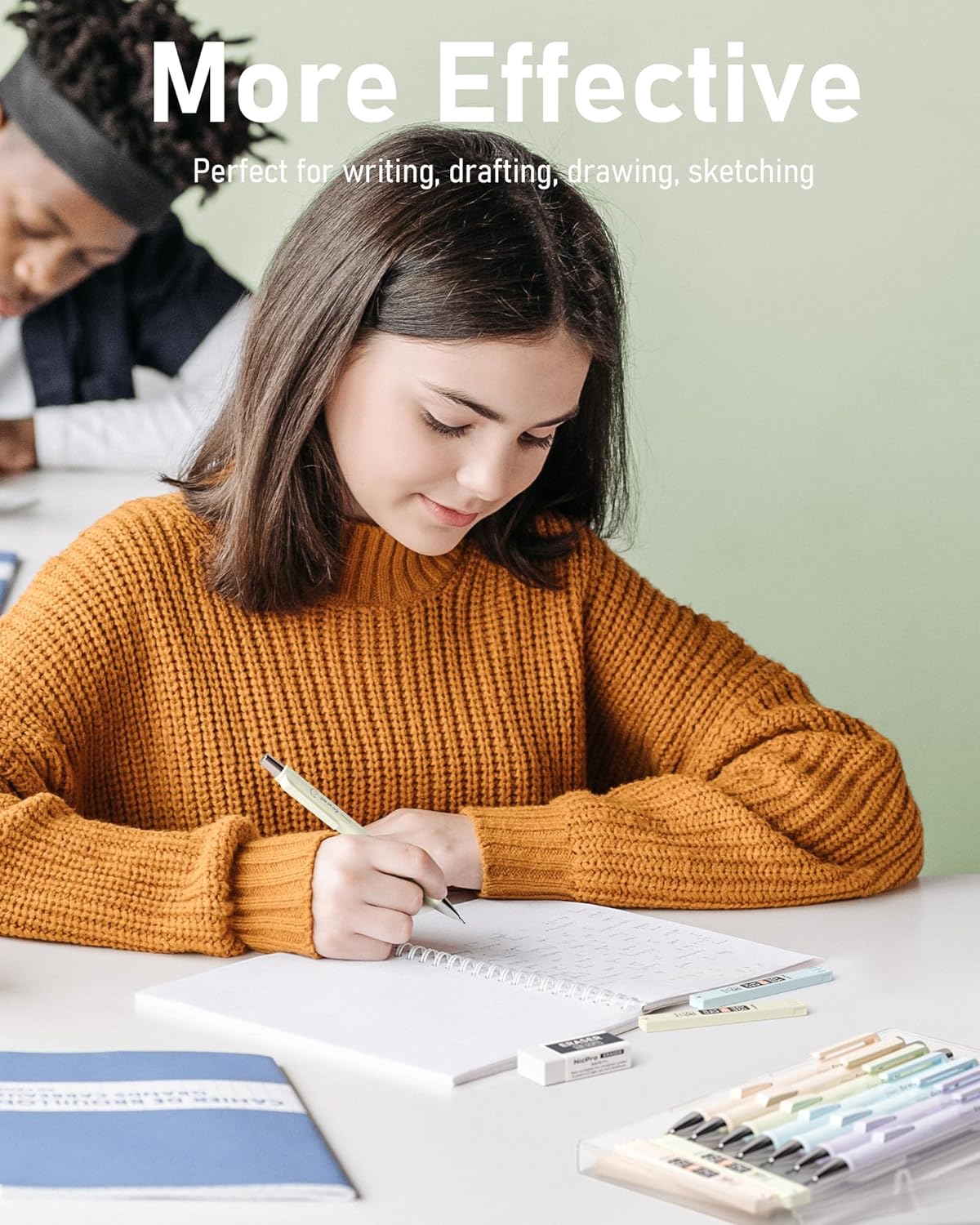 - 【Dark & Smooth Writing】: Pre-loaded with lead,never needs sharpening, is super strong & smooth, produces a clear dark line, and come with erasers that are easy to erase without traces. Ideal for professional artist & student beginner drafting writing drawing and sketching