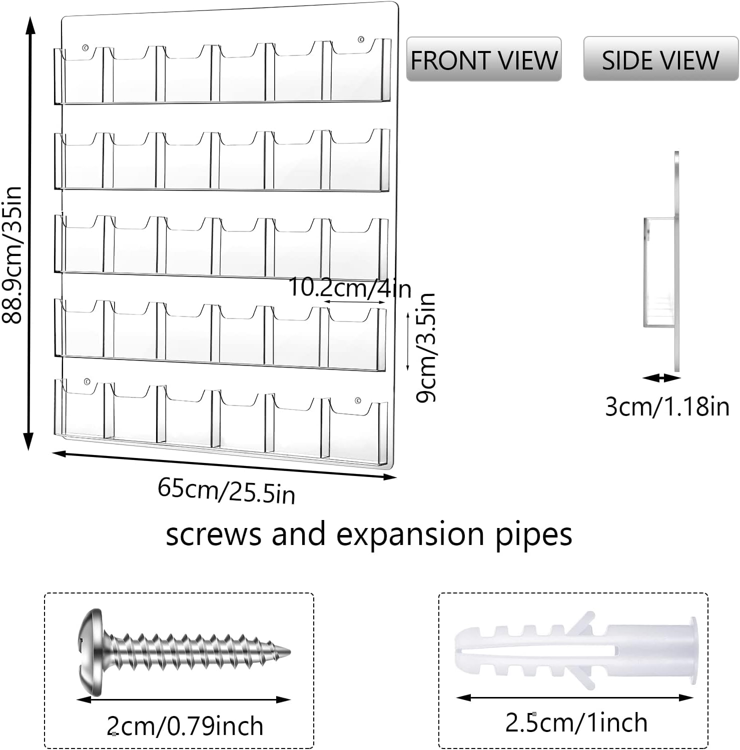 - Suitable Size: the overall dimension of our acrylic brochure wall mount holders is 25 x 37 inches, each pocket dimension is 4 x 1 inch, and each pocket capacity is approx 50 postcards, this is a useful business card or gift card wall display solution
