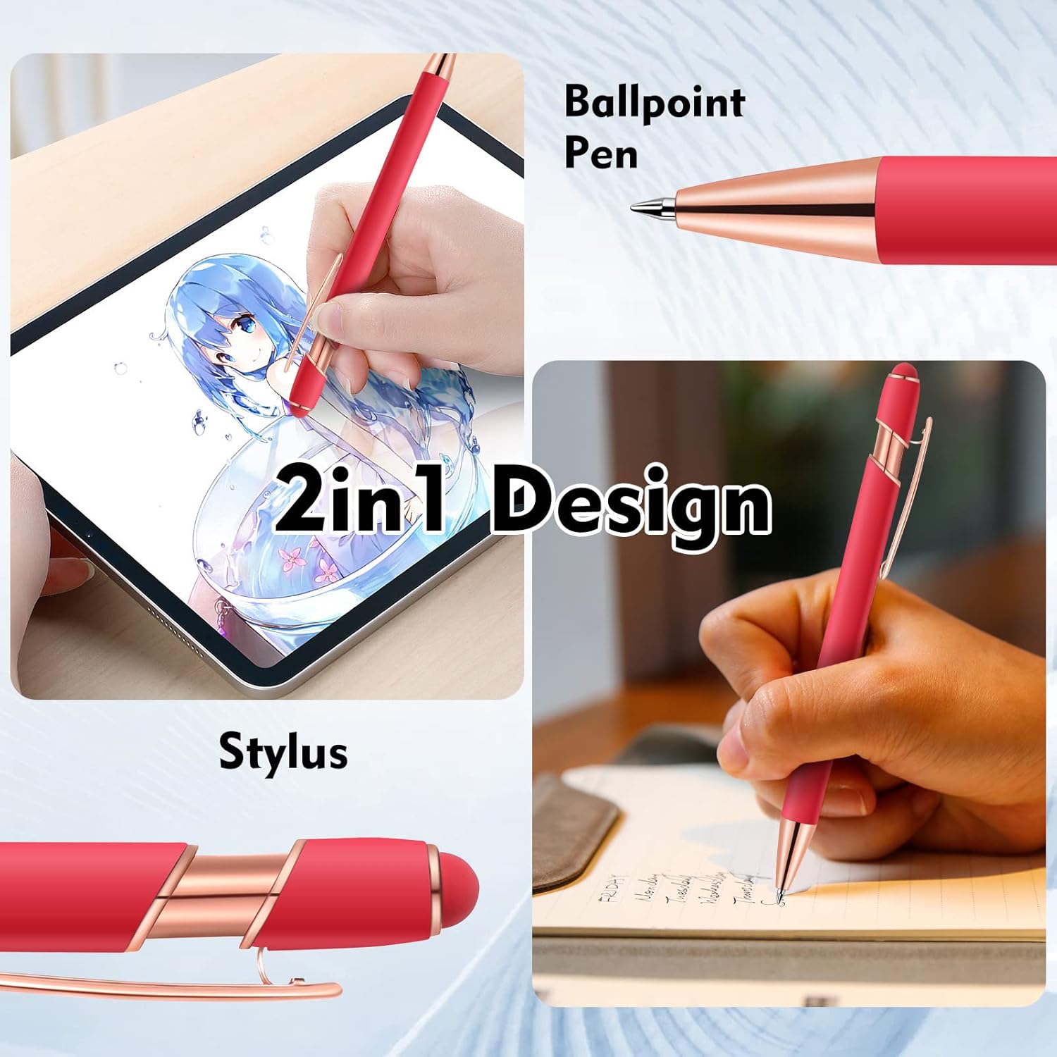 - 2 in 1 Design stylus pen: touch screen stylus and ballpoint pen; One end has a sensitive stylus, and the other end is equipped with a quality black ink ballpoint for convenient use; smooth and long-lasting ink flow writing; Press the stylus pen top to extend the pen for smooth and long-lasting ink flow writing;