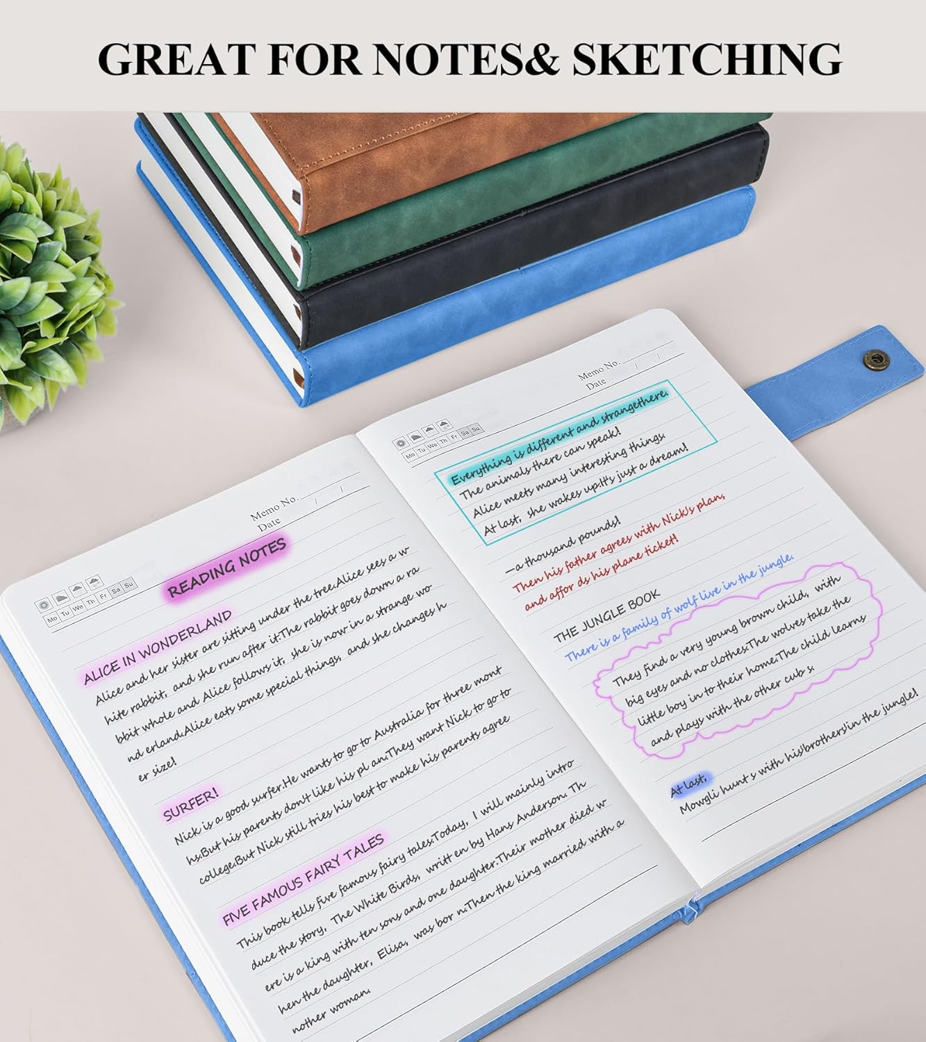 - 【CONVENIENT FEATURES FOR ORGANIZATION】:The leather journal includes 3 ribbon bookmarks, allowing you to easily mark important pages or sections. The 180° lay-flat design ensures that the notebook lies flat on any surface, making it comfortable to write in for extended periods. The metal snap closure design keeps the notebook securely closed, protecting your notes from damage.These features make the notebook a versatile tool for various settings, from work and school to personal use.
