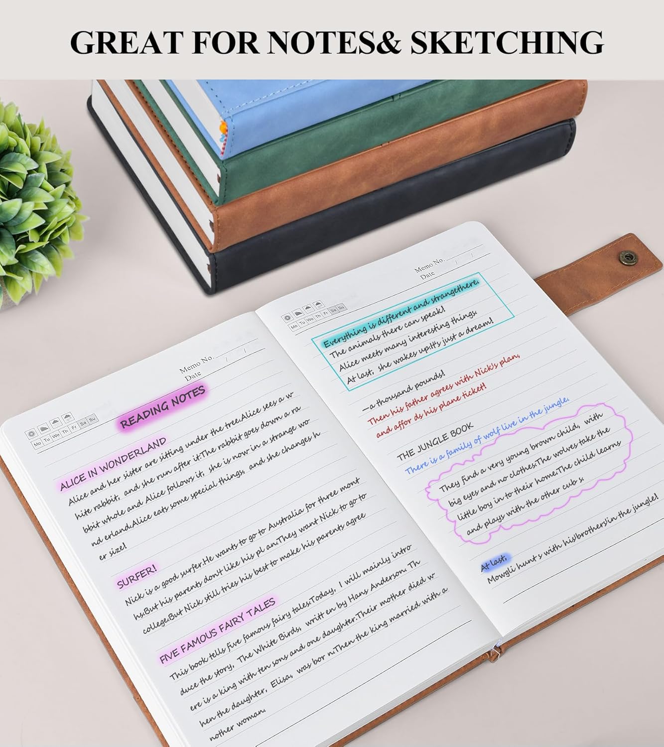 - 【CONVENIENT FEATURES FOR ORGANIZATION】:The leather journal includes 3 ribbon bookmarks, allowing you to easily mark important pages or sections. The 180° lay-flat design ensures that the notebook lies flat on any surface, making it comfortable to write in for extended periods. The metal snap closure design keeps the notebook securely closed, protecting your notes from damage.These features make the notebook a versatile tool for various settings, from work and school to personal use.