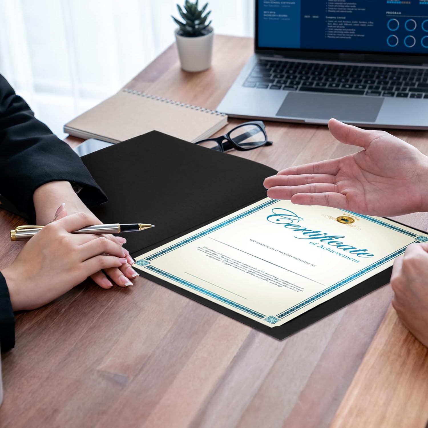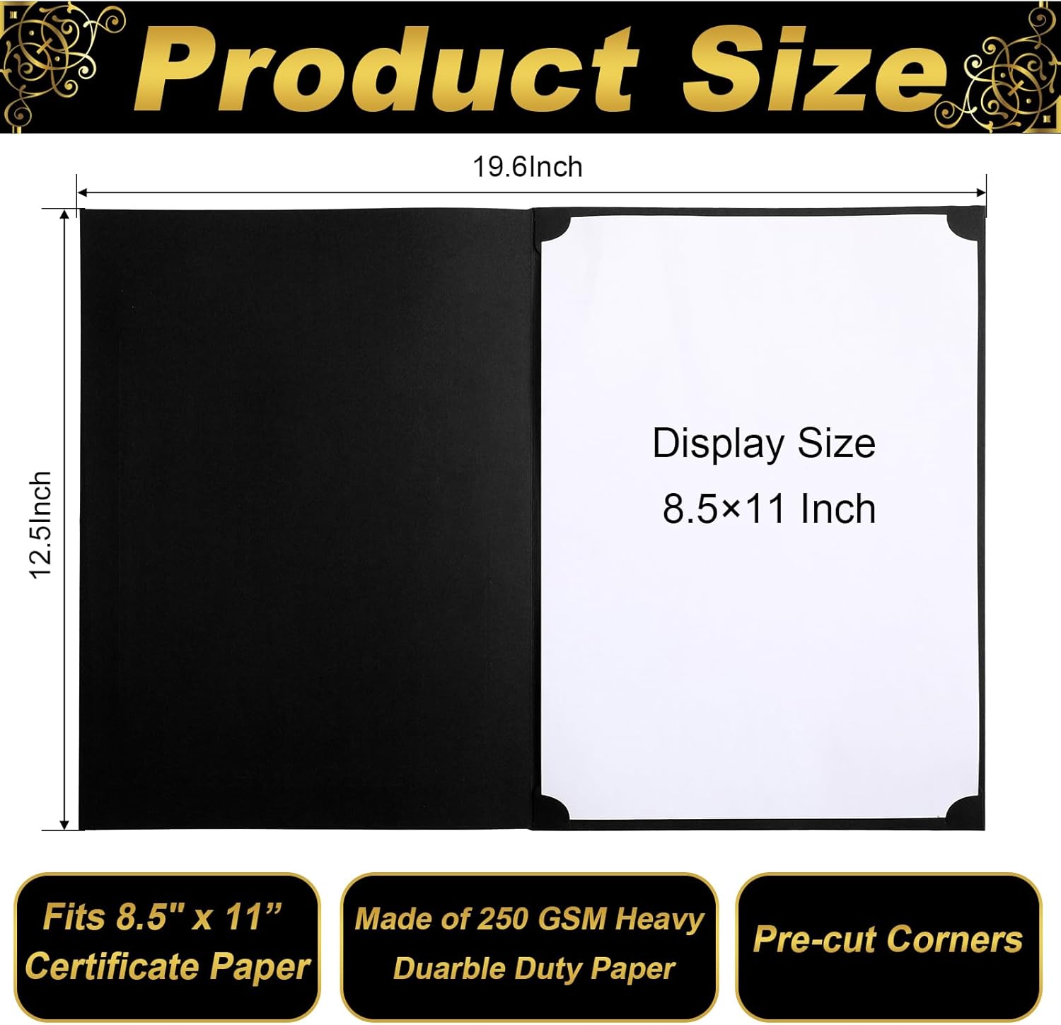 - Certificate Folders Size: Each holder is 12.5 x 19.6 inches, Certificate Holders measured 9.8 x12.5 inches after folded. Suit for holding vertically or horizontally 8.5 x 11 size documents, awards, certificates, and photos. These certificate holders bulk offer the protection you need