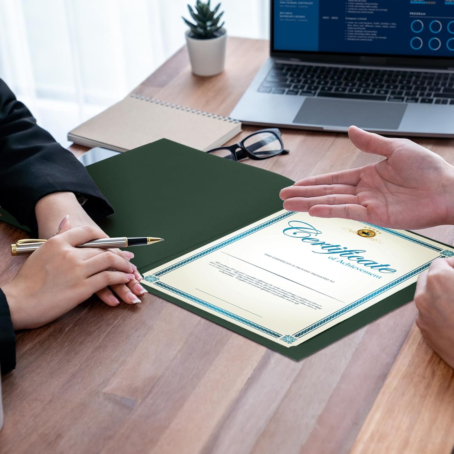 Fainne 120 Packs Certificate Holders Bulk, Diploma Covers Gold Foil Border, Document Covers for Letter Size 8.5x11 Award Certificates, Cardstock, Document Papers, Paper Card Stock(Green)
