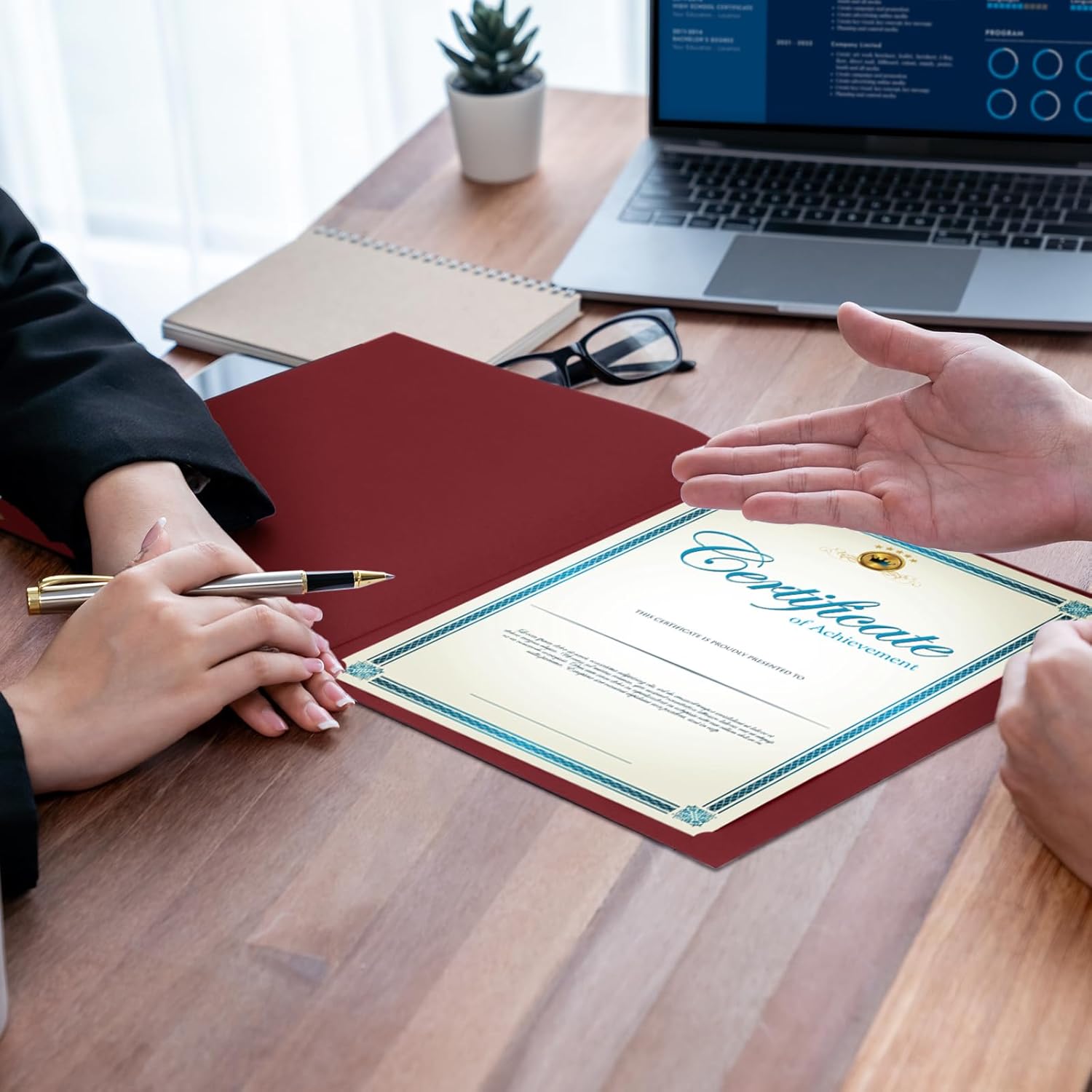 - Certificate Folders Size: Each holder is 12.5 x 19.6 inches, Certificate Holders measured 9.8 x12.5 inches after folded. Suit for holding vertically or horizontally 8.5 x 11 size documents, awards, certificates, and photos. These certificate holders bulk offer the protection you need