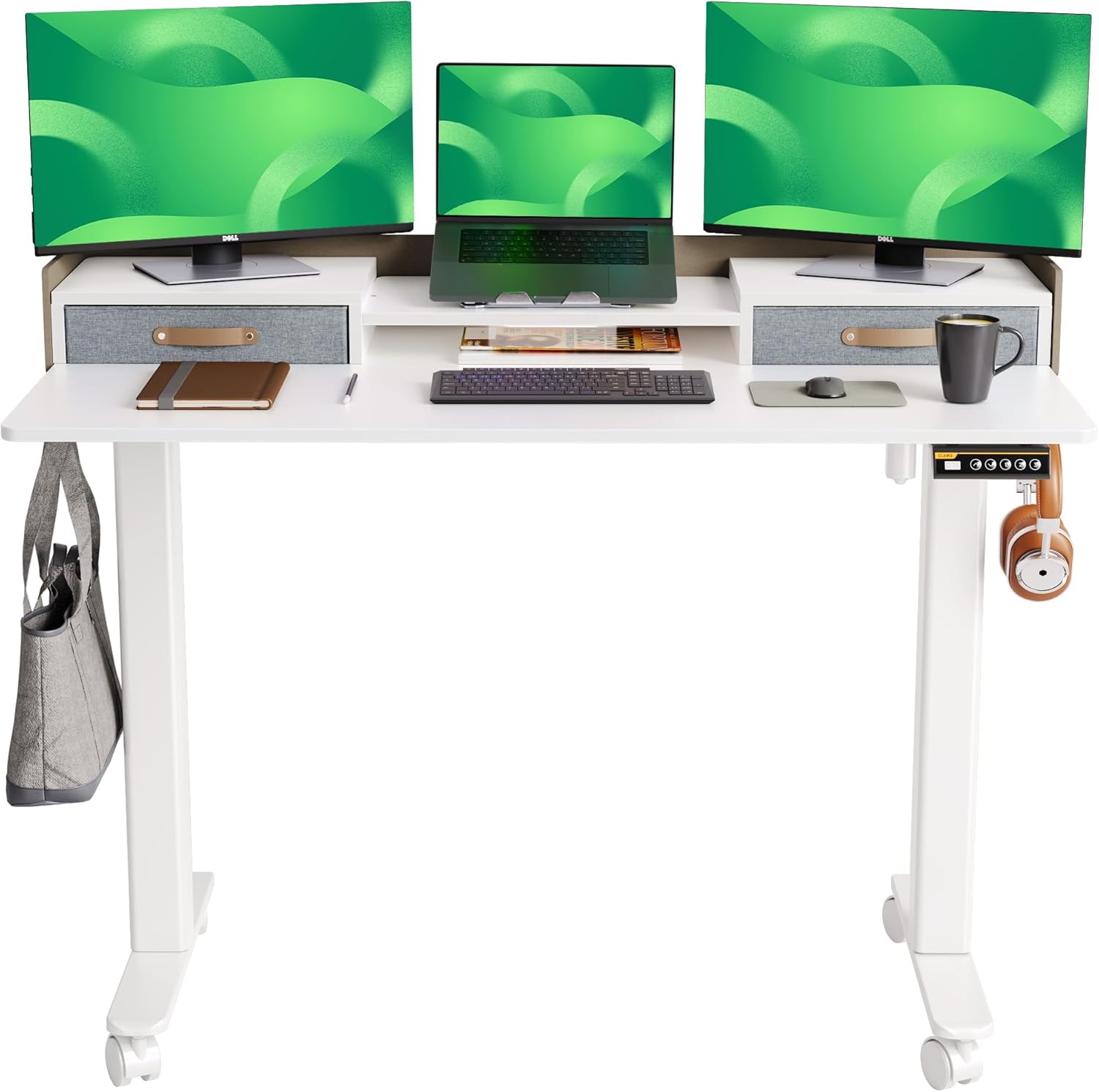 Claiks Standing Desk with Drawers, Stand Up Electric Standing Desk Adjustable Height with Storage Shelf and Splice Board, 48 Inch, White