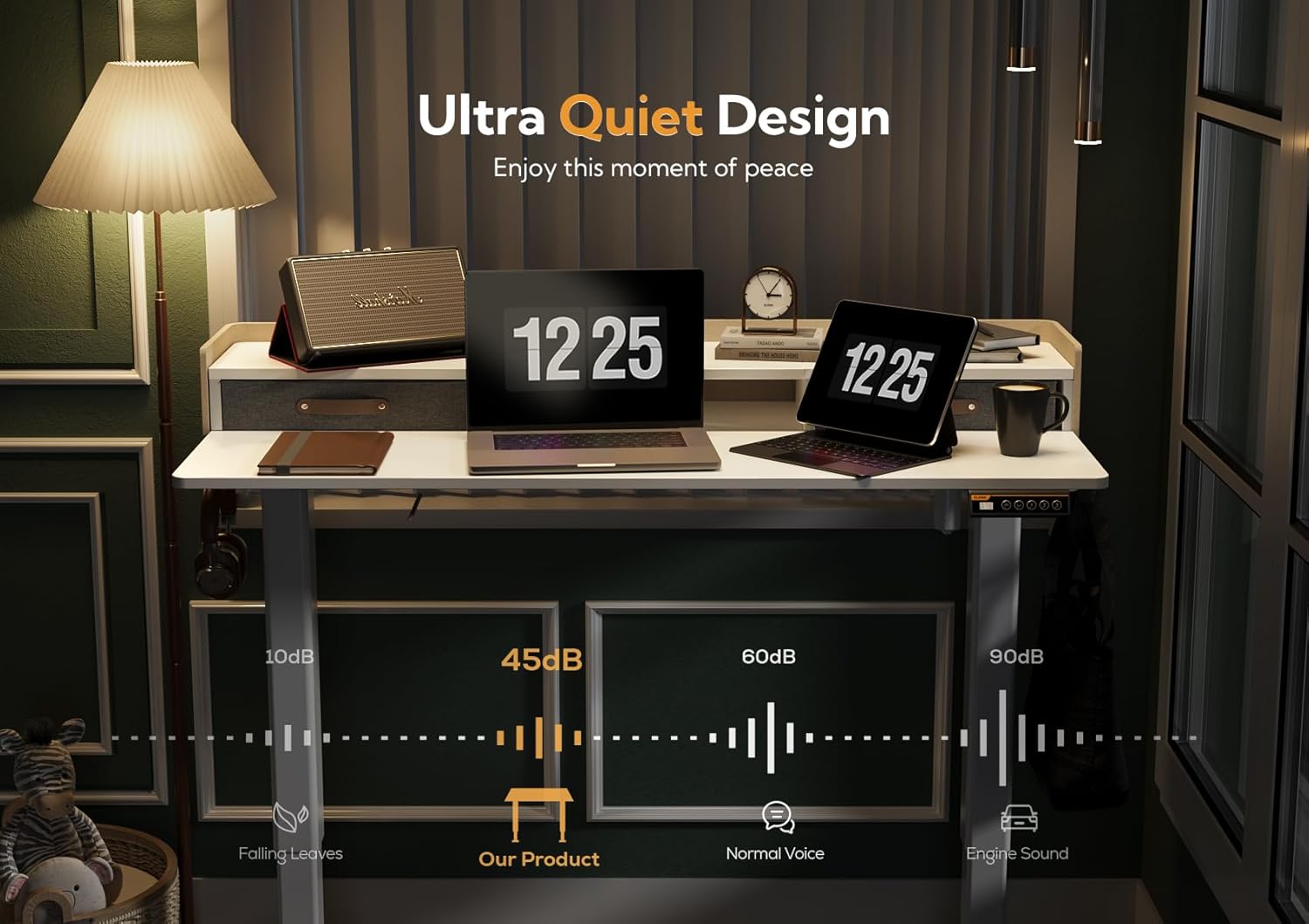 - Powerful Motor - With a custom motor, Claiks standing desk provides strong power for adjustable height, while keeping noise levels under 50 dB