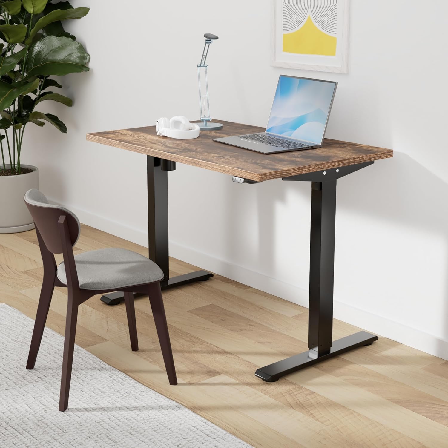 FLEXISPOT EN1 Whole-Piece Standing Desk, 48x24 Electric Sit Stand Desk for Home Office (Black Frame + Rustic Top, 2 Packages)