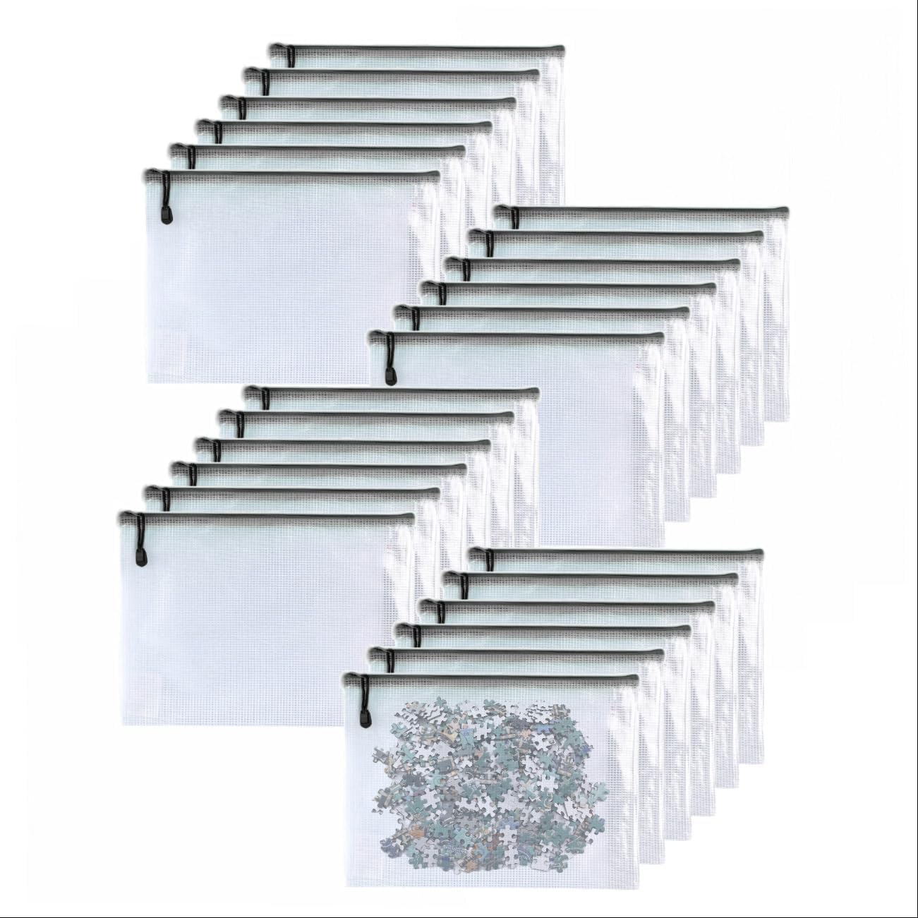 Oaimyy-24PCS-5 x 7"-Mesh Zipper Pouch, Plastic Zip File Folders Puzzle Bags for Organizing,Office Supplies,Travel,Home Storage-Black