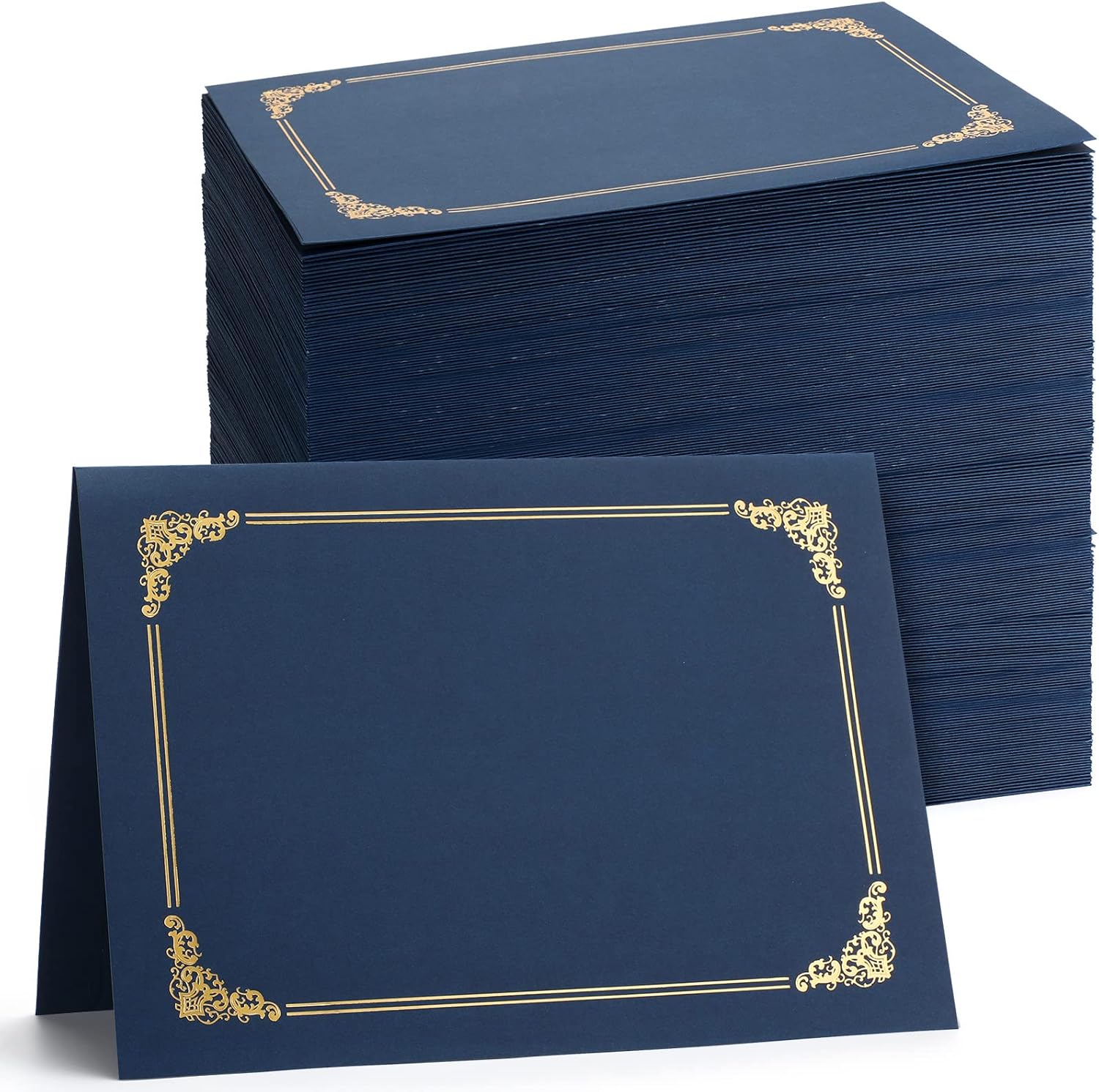 Fainne 80 Pieces Certificate Holders Diploma Holders Document Holder Certificate Covers Certificate Folders with Gold Foil Border for Letter Size 8.5 x 11 Inches Diploma Documents Awards (Navy Blue)
